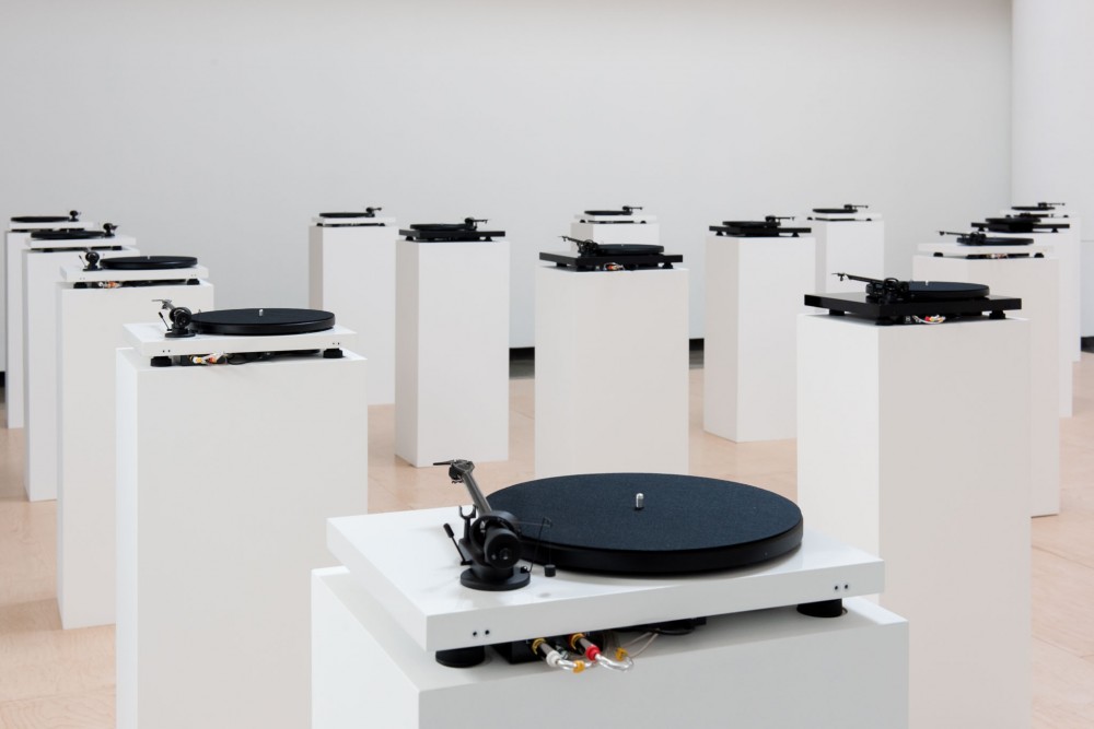 Installed at UAM from September 16th through December 9th, 2018, the core of American MONUMENT is a formal array of turntables. Each one plays a recording of an individual act of police brutality, the sound taken from police reports, court transcripts, witness testimonies, and audio files captured by bystanders. If the decision on the part of the Cal State University Long Beach (CSULB) to remove Meyer from her post was meant to quiet internal discord brewing around American MONUMENT, it had the opposite effect. It set in motion a cascade of actions that amplified attention on the show. At the September 16th opening, woods, in protest of Meyer’s firing, publicly “paused” the exhibition with the words: