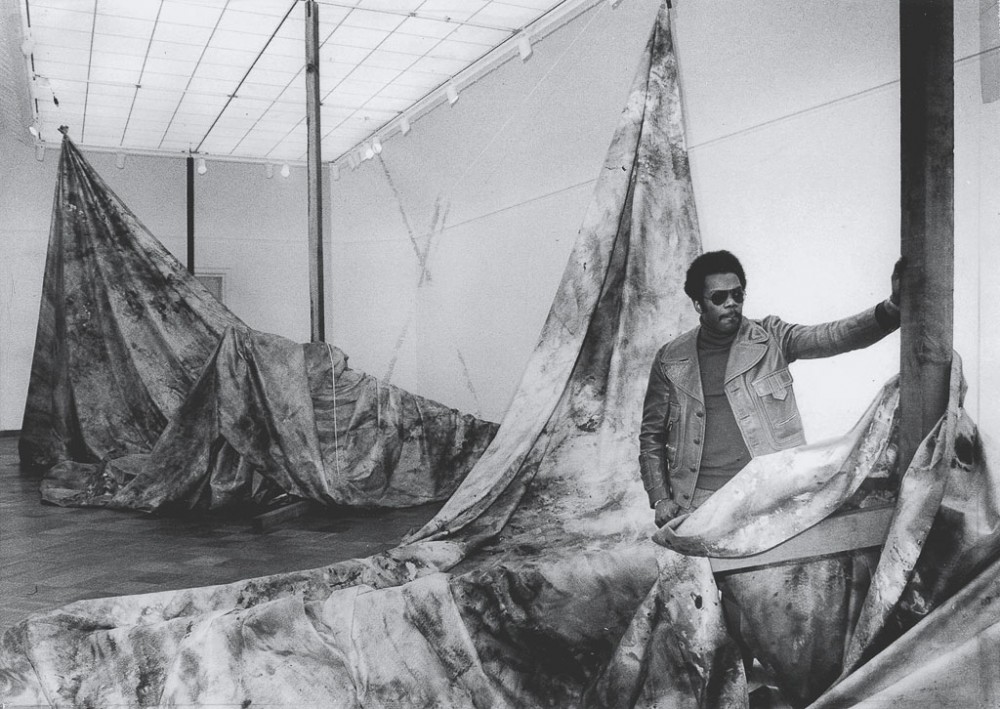 Sam Gilliam, Autumn Surf, Installation view of the exhibition Works in Spaces (1973) at San Francisco Museum of Modern Art, 1973. Photograph by Art Frisch. Courtesy San Francisco Chronicle © 2018, ProLitteris, Zürich.