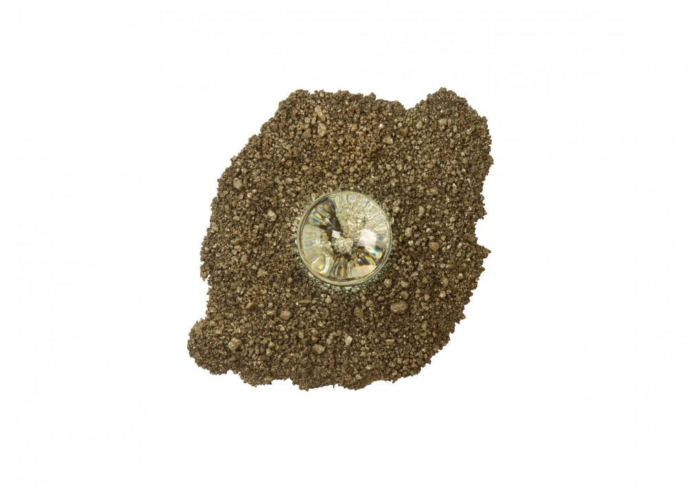 Pyrite Caviar Sconce (2016); Steel granules, epoxy, anodized aluminum, glass, LEDs. Available through The Future Perfect.