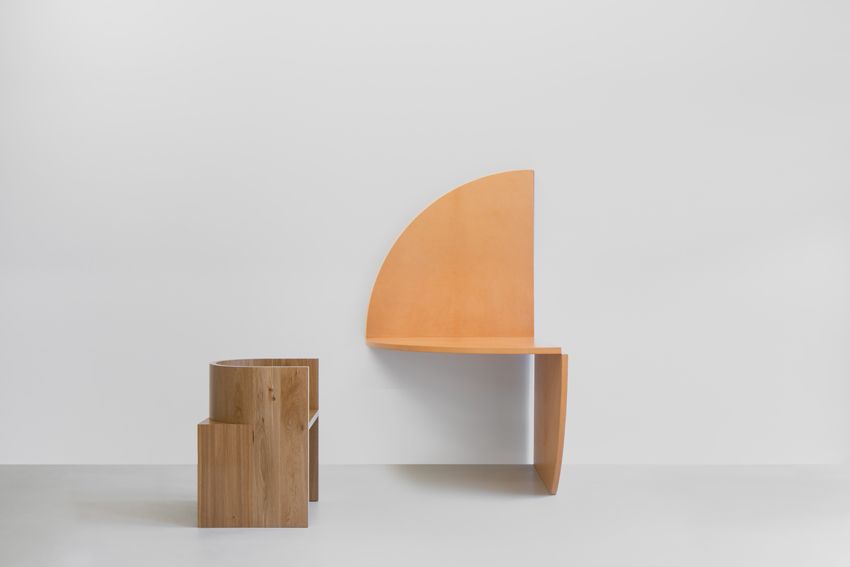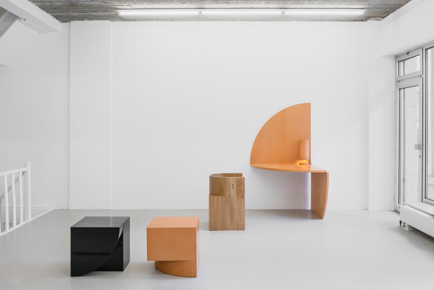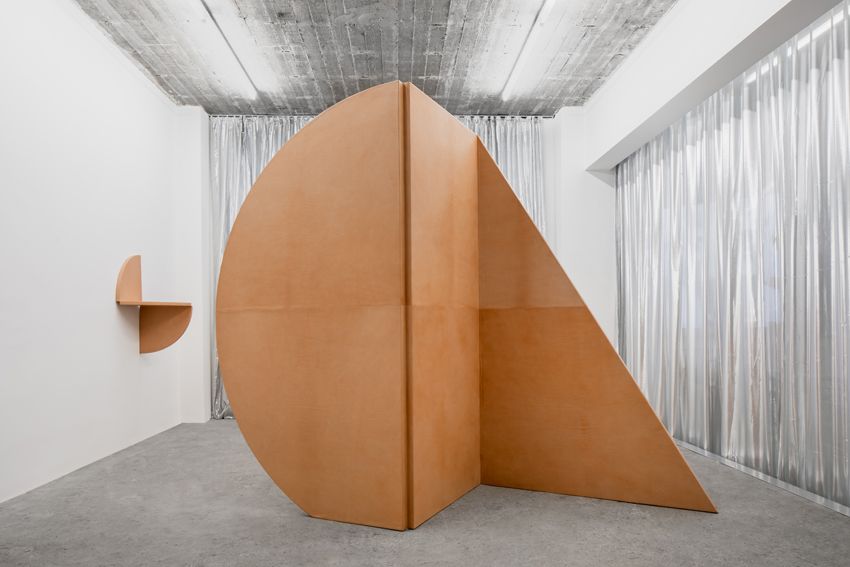 For Collectible’s founders, Clélie Debehault and Liv Vaisberg, one of the fair’s strengths is its inimitable blend of the international and the local, with around half the exhibitors hailing from the Belgian scene. Among them was the excellent Maniera, whose gallery is just a couple of blocks away on Brussels’s Place de la Justice. While Maniera usually mixes genres by showing furniture designed by architects, they’re currently mixing things up further with a new collection dreamt up by architect Bernard Dubois (who studied photography before going to architecture school) in collaboration with leather-goods designer Isaac Reina (who studied architecture before coming to fashion). “Maniera approached me to team up with a fashion designer,” explains Dubois, “and since we’d got on so well working together on his Paris store, I immediately thought of Isaac. He’s just as fussy and obsessive as I am!” Derived from the furnishings designed for Reina’s 2018 rue Bonaparte boutique, the Maniera collection features eight pieces — a folding screen, a desk, a folding table, a low table, two chairs, a tablet, and a lamp — that mix simple, almost art-deco geometry with exquisitely immaculate leather finishes in matte black, patent black, and soft natural hide (or you can have them all in solid oak if you prefer). “There are straight lines and curves, but each time there’s an asymmetry and disequilibrium that we found interesting,” continues Dubois. “Your perception of each piece can change radically depending on your viewing angle,” he says of the almost Cubist tension between 2D and 3D that reaches its apogee in what looks like a wall sculpture, until you realize you can unfold it for use as a table top. All of Reina’s savoir-faire comes into play here, not only in the miraculously seamless leather finishes but also in the super-strong fabric hinge that was originally developed by Louis Vuitton for its steamer trunks. And it’s this hybrid eclecticism, not only in genres and disciplines but also in references — “Some pieces look like they could be derived from the Villa Savoye, others are somehow more Pop,” muses Dubois — that underpins the conceptual complexity of this elegantly and deceptively simple collection.
