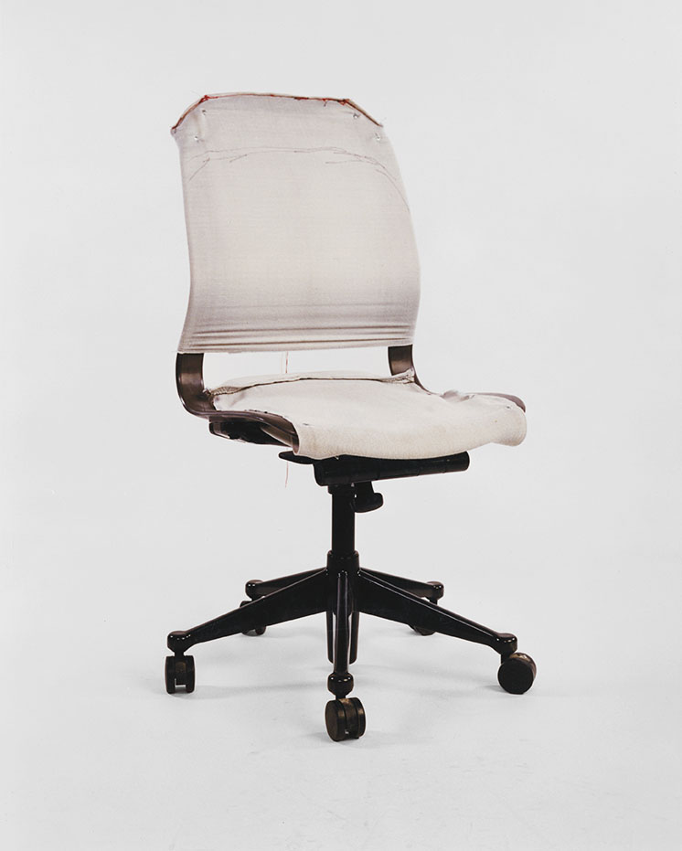 “This is one of the first prototypes of the Aeron chair. In this particular iteration, it’s reminiscent of an Eames Aluminum Group chair. The base and tilt are from an Equa chair and they’re experimenting with side profiles and the stretched mesh. What I like about this image is that it’s an early prototype of one of the most famous chairs ever created and probably the best example of a chair being designed as a piece of equipment. And still, the prototype looks rough, almost as if it could have been made by Jessi Reaves.”