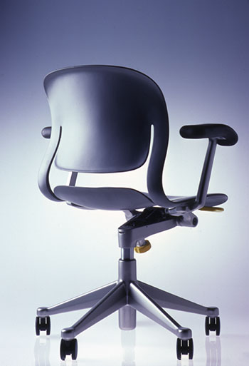 Sarah chair mechanical prototype developed by Don Chadwick and Bill Stumpf, c. 1987. Image from the collections of the Henry Ford.