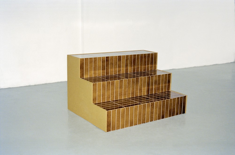 ExCinere pursues one strand of Formafantasma’s research, in which they melted volcanic ash onto a clay body, to its functional conclusion, culminating in a range of ash-glazed ceramic tiles produced between Sicily and Emilia-Romagna (a center of European tile production). Wanting to keep the glazing composition as “pure” as possible, the ash is mixed with only one additional ingredient — a flux to reduce the firing temperature. In the final version, four shades of glaze mark a spectrum between honey yellow and deep brown: the color is determined by the concentration of iron in the lava. Meanwhile, the evenness and opacity of the surface texture depend on the size of the ash granules. Although the range of possible finishes is much wider, the limited selection reflects Formafantasma’s duality after a decade of studio practice. On the one hand, they prioritized results that could be achieved efficiently and affordably according to the logistical constraints of industrial manufacture; on the other, they ruled out options that would require extra oxides, which would necessarily involve mining (volcanic ash can be collected above ground).
