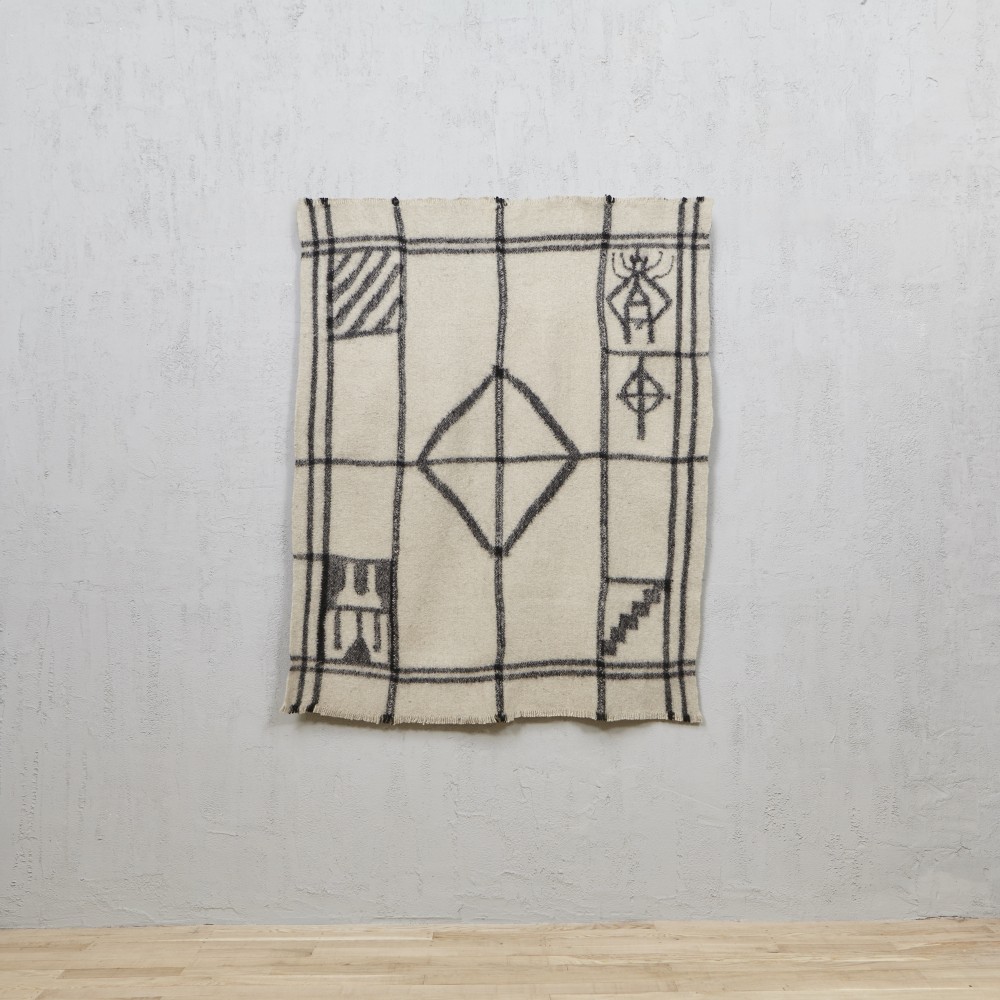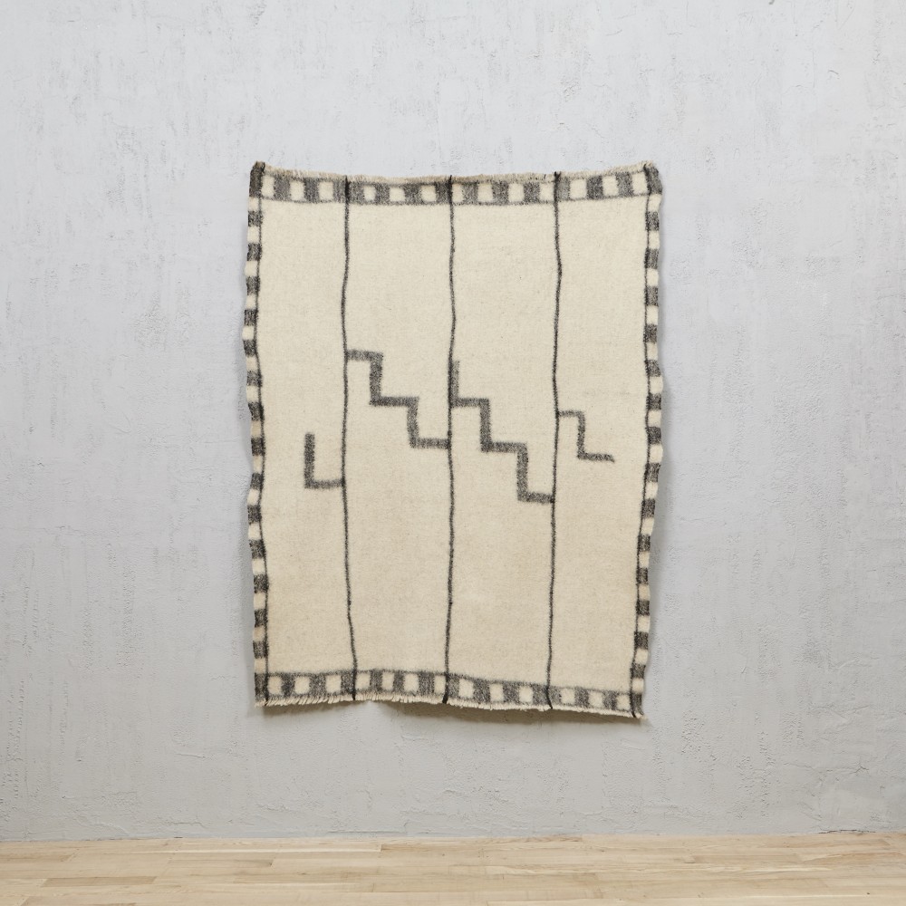 It is a widely acknowledged fact that the roots of computers are in textiles. The loom, with its over-and-under matrix, served as the inspiration for the binary system that still underpins digital technology today. Alexis Gautier’s carpets delve into this connection, pointing to deep historical connections between weaving and encoding. The works were developed through investigations in Nepal, Italy, England and India; in each location, Gautier identified symbols associated with local stories and mythology. In Lamjung Bhujung, for example, he was told the story of “a man who climbed the village stairs holding a staircase above his head” — an Escher-like image that appears in several of his designs. Each piece is woven in strips that correspond to the width of the weaver's waist, then joined during the felting process. Gautier’s carpets were featured at the inaugural exhibition at Blue Mountain School, a collaborative space in London’s East End incorporating a range of experiential spaces: fashion viewing rooms, a kitchen and wine bar, exhibition gallery, listening rooms, and a perfume atelier.