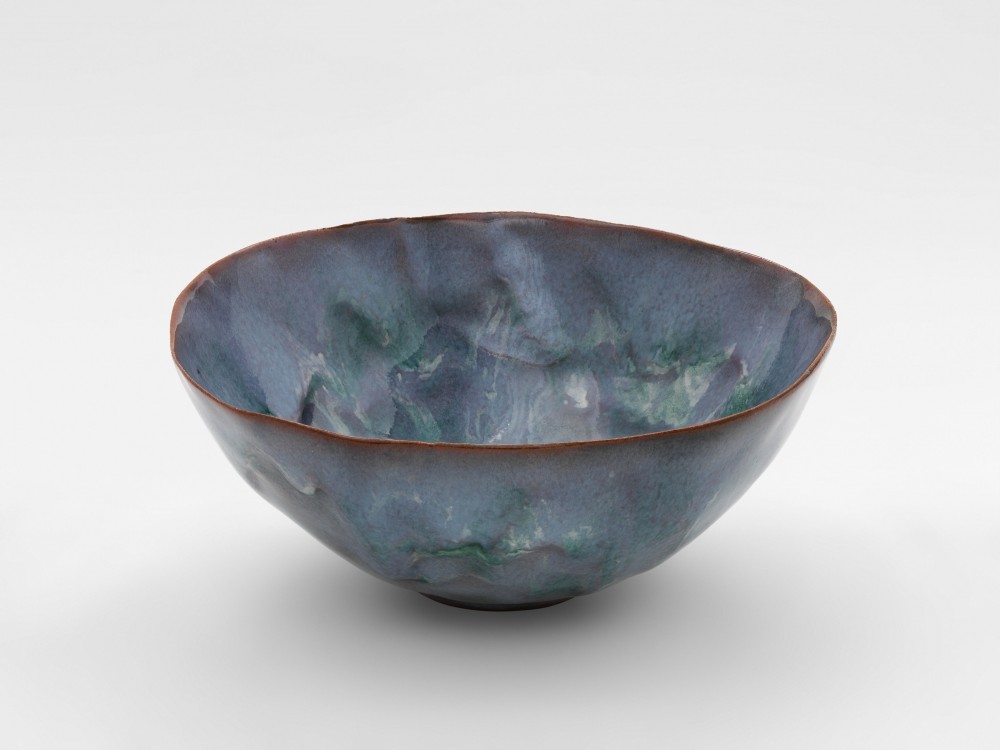 Recent years have seen a reassessment of midcentury Italian ceramics, a field whose contributions to the larger project of modernist abstraction was long overlooked. Alongside the ceramic production of Lucio Fontana, there has also been a reappraisal of lesser-known figures like Fausto Melotti. He connected early in his career with the great designer Giò Ponti, then the artistic director for the ceramic factory Ricardo Ginori, and remained involved with the medium for decades, particularly in the years following World War II. This beautiful bowl engages with contemporaneous abstraction, while also conjuring the idea of a fragment of sky brought to earth.