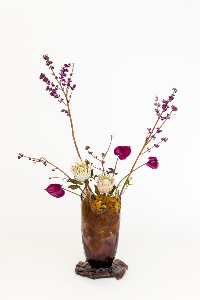 Brooklyn artist Ann Agee works in many media, with special dedication to ceramics — she was among the first to show that this discipline could be reinvented for the 21st century. This achievement was possible because of the particular combination of historical expertise and pure pleasure that she brings to the medium. Though always cognizant of precedent, her freedom of handling and accumulative, associative approach give her work unmissable contemporaneity. In the case of Maid In Form, an upright, possibly figural form is besieged by ornaments — one might draw comparison to natural coral formations, with their boundless visual interest.