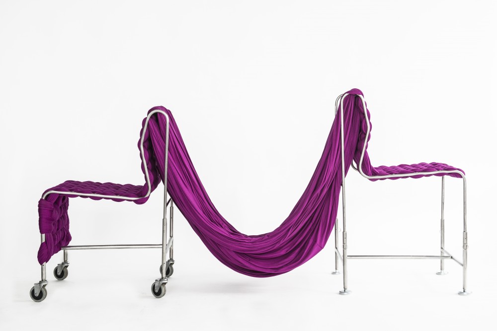 Liz collins & Harry Allen, Chair Chair Pair (2017); Steel and rayon jersey fabric. Photo by Jonsar Studio. Copyright The Artist. Courtesy Rossana Orlandi Gallery.