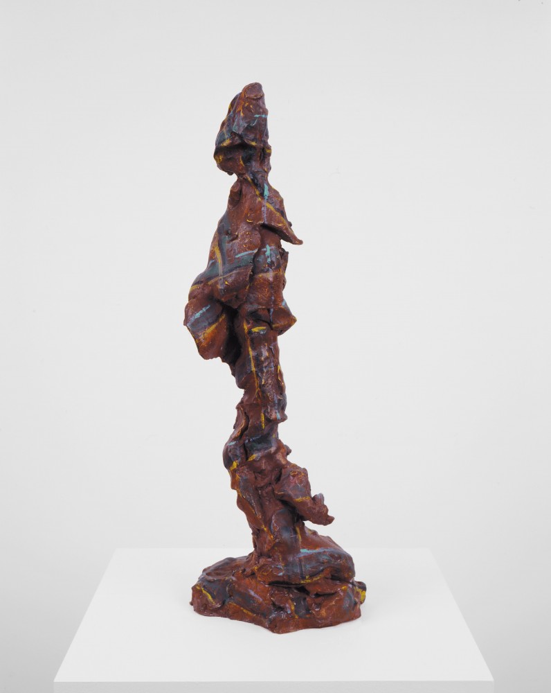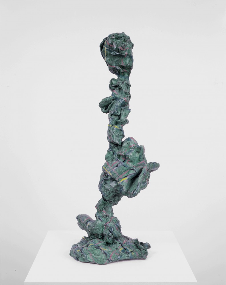 Rebecca Warren, Totem (e.) (2008); Hand-painted bronze on artist’s wooden pedestal. Copyright The Artist. Courtesy Demo Gallery.