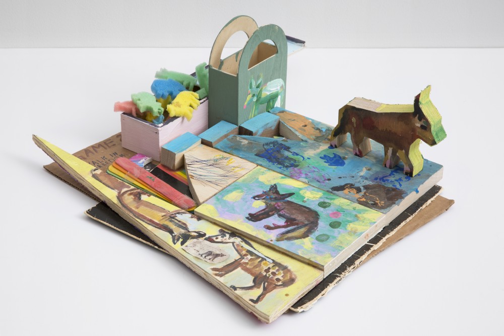Susan Cianciolo, Game 2. WALK IN FREEDOM (2018); Cardboard, wood, acrylic paint, popsicle sticks, tape, glue, styrofoam, pen. Photo by Gregory Carideo. Copyright Susan Cianciolo. Courtesy the artist and Bridget Donahue, NYC.