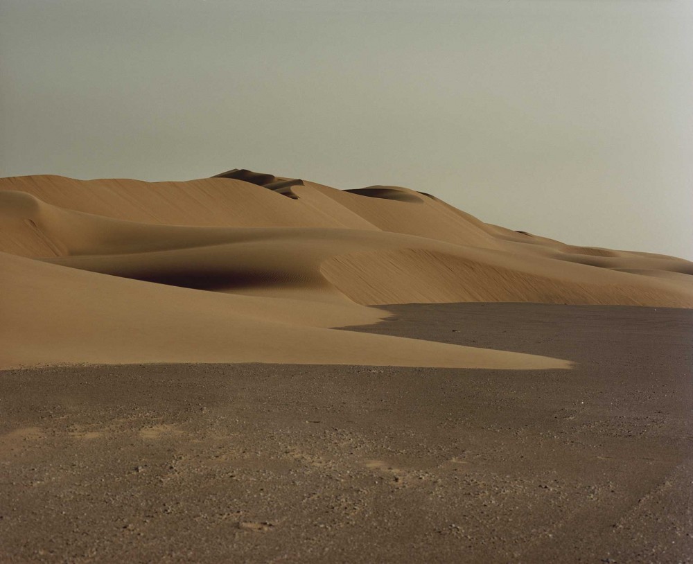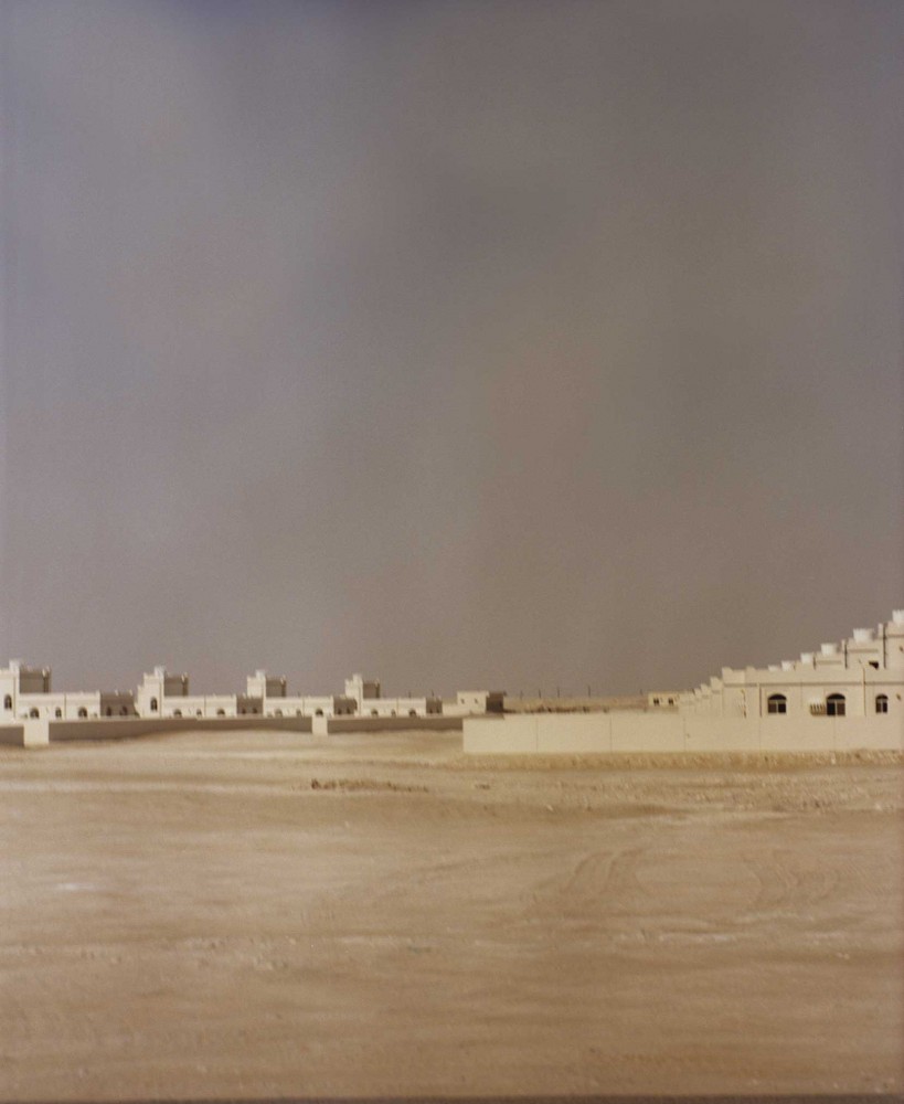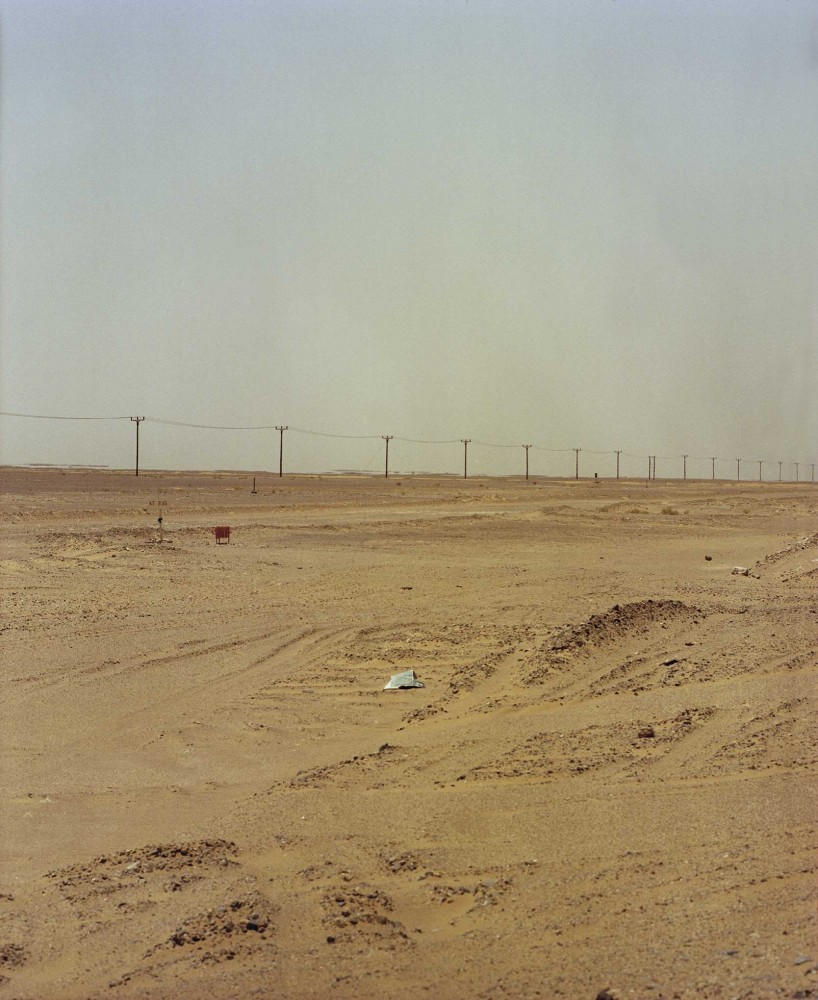 Stretching almost the entire length of the country, Route 31 is a highway of monotony. On either side, as far as the eye can see, a flat desert-scape is set on a continuous loop, with only a sparse scattering of desert shrubs to relieve the tedium. Occasional uniform clusters of sand-colored villas appear and disappear, with backyard dumpsters lined up outside. Grinning 2D wooden models, dressed in hi-vis jackets, stand at regular intervals on the roadside, holding out red flags to warn of upcoming works. At points, the road passes monumental reddish dunes, like soft peaks of meringue, and whirlwinds of sand constantly twist by. Service stations, every 50 miles or so, are like points of pilgrimage, where canteens serve up dahls, kingfish curry, and karak chai — a strong and sweet milky tea — and the gas pumps back onto diminutive makeshift mosques.