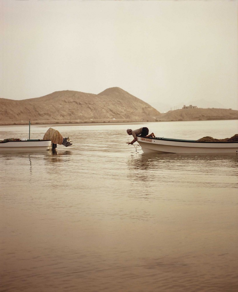The following pictures were taken on a five-day, 2,186-mile road trip from the north to the south of Oman, the southeastern-most country on the Arabian peninsula. Together with the photographer Kuba Ryniewicz, I had rented an old Nissan Micra to trace Route 31, a dusty four-lane highway that cuts through the desert which covers 90 percent of the nation’s territory. The starting point was Dubai, in the neighboring United Arab Emirates, from where we crossed through the Al-Hajar Mountains against a vivid blue sky to Oman’s northern coast where small rambling villages open onto wild stretches of beach. Our end destination was the southernmost city of Salalah, on the border with Yemen, joining a seasonal migration when Gulf residents make the long trip down to Oman’s Dhofar region for the khareef, the monsoon that transforms a dusty dull-gray landscape into vibrant green from July to September.