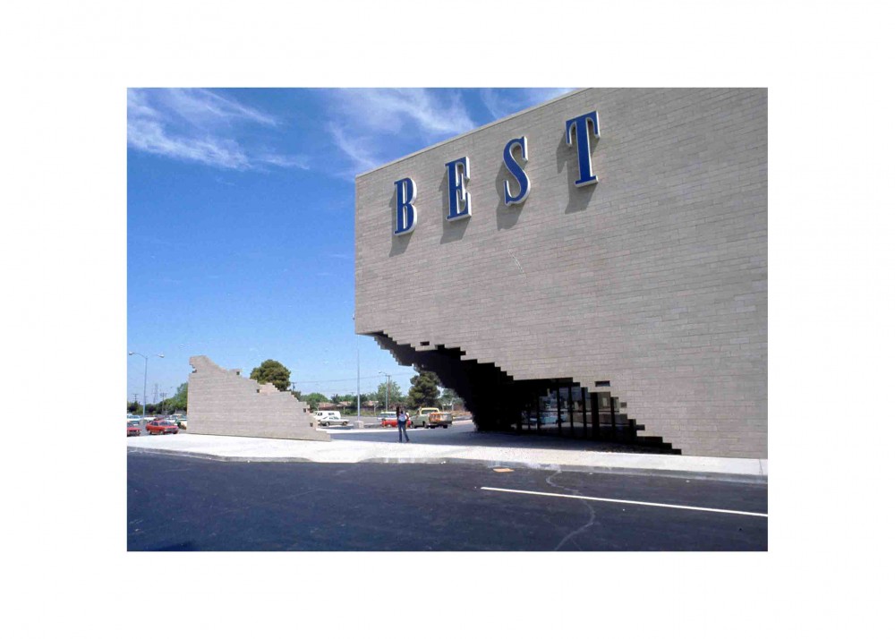 BEST Indeterminate Façade, retail store in Houston, Texas, main façade view from parking lot, 1975. © SITE Architecture