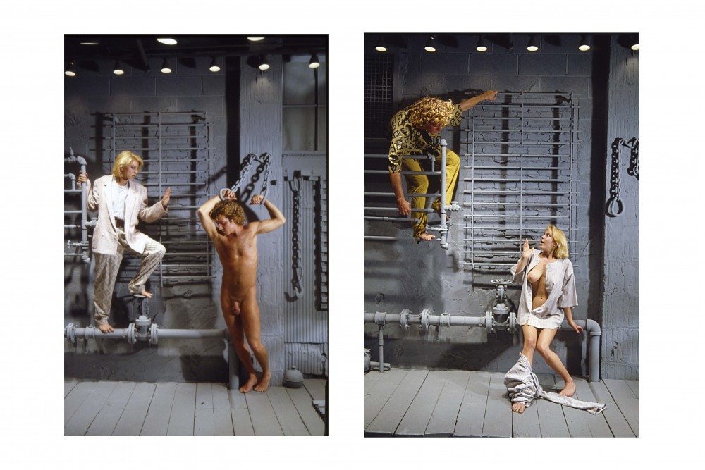 Still from a narrative photo shoot in the WilliWear men's showroom designed by SITE Archtitecture (c. 1982). © Andreas Sterzing