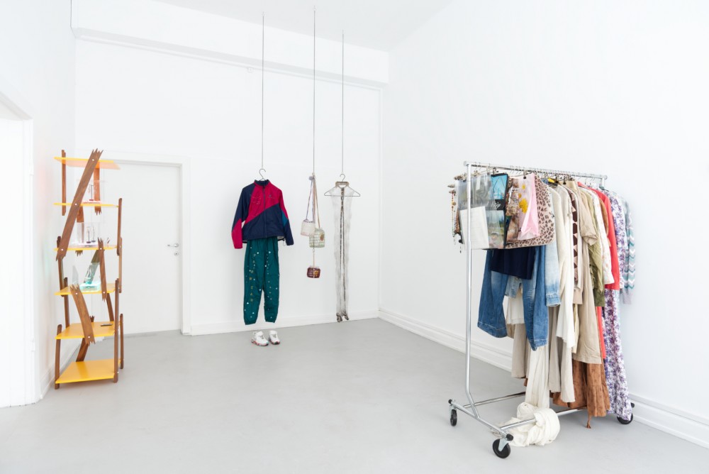 While contemporary art tries its best to muddy the origin story and trade routes of its material process, resulting in many zeros being added between the artists’ production of the work, it sitting in a Swiss shipping container for 10 years, and its final sale price at auction, fashion insists on addressing how objects circulate in real time as cultural commodities. In other words, it can teach art a lot about affordability and access — and about bridging the topic of finance between artist and gallerist — a conversation that former is often left out of. “It was super important to discuss pricing with the artists and the gallerist, asking what we hope to achieve in terms of sales,” recounts Ugelvig. Curious how this model of transparency looks on the fashion side of the fence, I ask Ugelvig about the exhibition’s opening reception, staged during Copenhagen Fashion Week. “It was packed with art and fashion students,” he shares. “They are all seeking) out new models and new scales of production. In an industry that has a history of marginalizing practices that don’t sit neatly in categories, it’s important for the next generation of designers to ask, how can you make a living doing what you’re doing.”