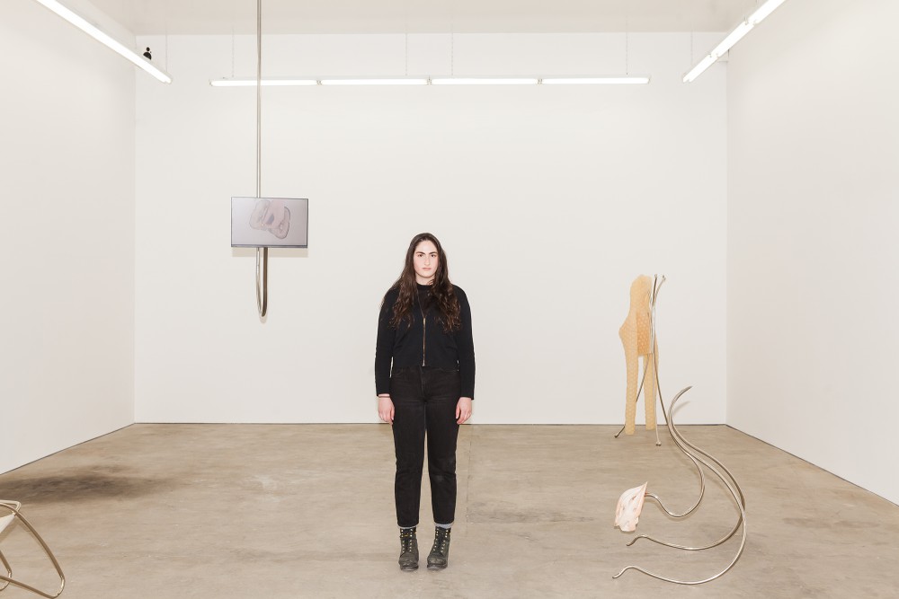 Portrait of the artist Hannah Levy in Swamp Salad, her current exhibition at C L E A R I N G, Brooklyn. Photographed by Sean Santiago for PIN–UP.