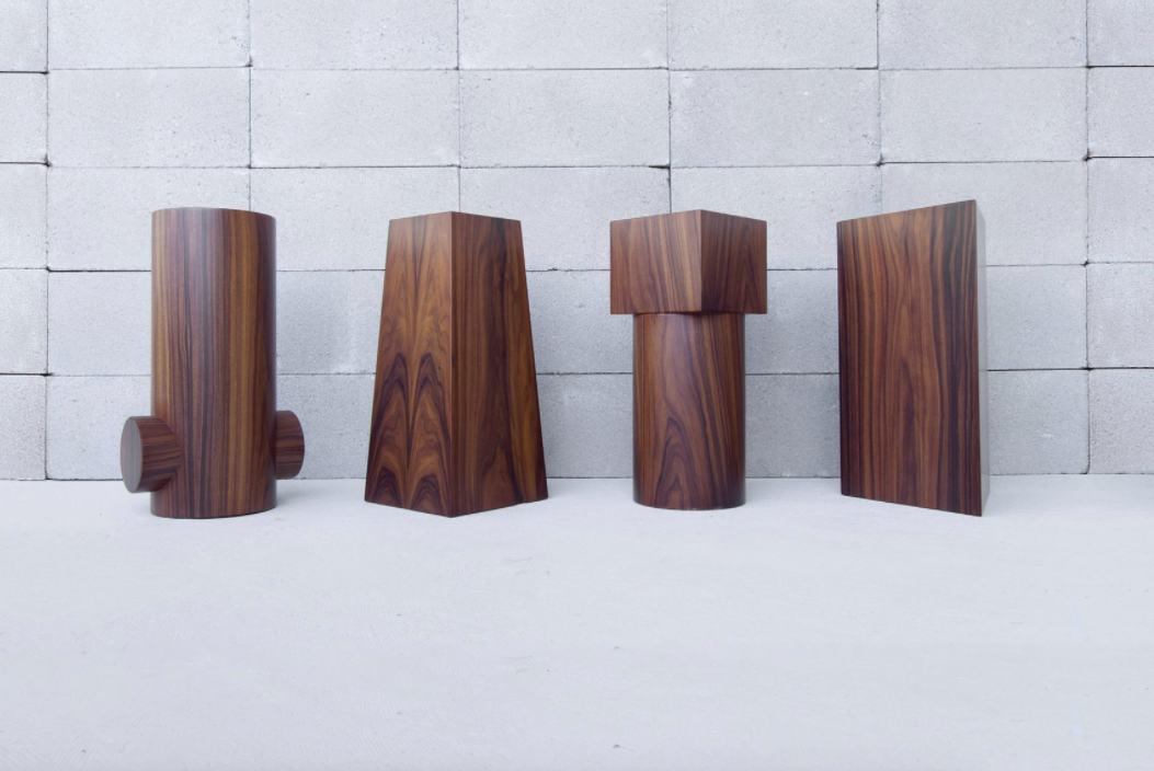 I like working with raw materials in general — I’m not particular about concrete or stone — I find there is beauty in the rawness of the material. And just as I like importing forms from another field or from another reference, I also like to repurpose materials in a different way. For example, stone is usually meant for architecture rather than furniture, and it is used mostly as a finishing material. However, I have made furniture out of stone and made it completely structural. In this case, the wood for the vases is sculpted, something that is unusual in architecture where wood typically comes in panels. These shapes could have easily been molded in concrete, yet I chose to put the material to a test and in a way stay away from the conventional.