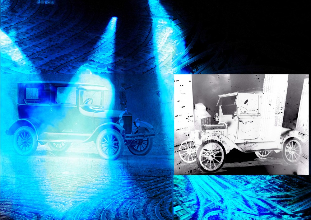 On a fundamental level, the car restructured the relationship between space and time. But it also entered our cultural consciousness in a much more proximate way; our relationship with cars became so intimate that they were treated like pets, humanized, given a name and room in our homes. The influence of power this machine had on the rituals of life imbued it with a soul, and the ghost in the machine was created. The machine was not invented to have autonomy; rather it was a piece of metal under our control, feeding back into the psyche of patriarchal capitalism, in which the ego is exerted into everything and everyone around you, forming a ventriloquist-dummy dichotomy, in essence the dream of sub- urban reproduction was embodied in the car-human relationship. The car became the favored family pet, exploited and cared for by all. In creating a space in our culture for cars, however, cars and their manufacturers ended up influencing elements of our culture. This seemingly spontaneous glorification of the car is attached to a dark history of corporate interests and national economic reinvigoration schemes seeping into the home. Endemically, as if a parasite, the business of car manufacturing ruled and began to dictate existence; each garage built marked the successful adherence of the technology into everyday life.