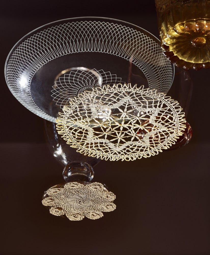 But despite the doily’s decidedly kitsch reputation, its intricate detailing can still evoke the crisp cool of calligraphy, the magical sparkle of snowflakes, or the sartorial sophistication of a lace cuff.