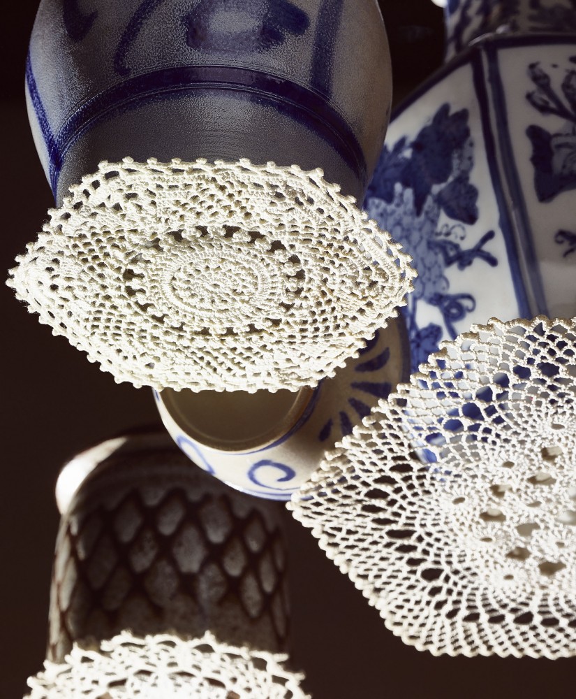 For centuries the doily and its derivatives blossomed on domestic surfaces — tables and sideboards, sofas and armchairs, grand pianos and windowpanes — as the preservers of materials, traditions, and propriety. But now these guardians of the home have been all but exorcized from the modern interior with its receding living space, mandate for functionality, technological gadgetry, and mass-produced furniture with minimal shelf life.