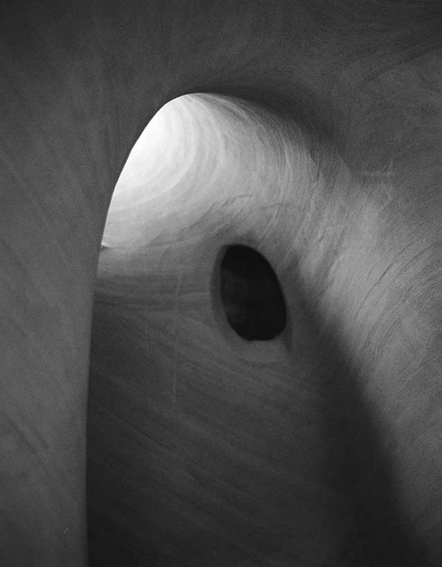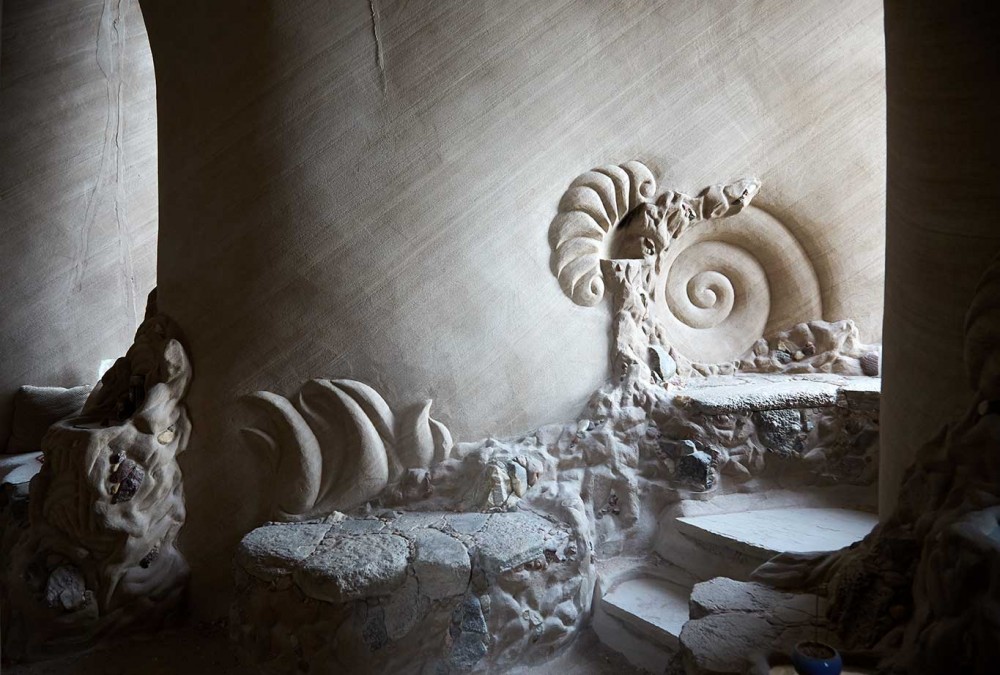 It’s midday in northern New Mexico, and the guided tour starts with a request (nay command) to stay on the sandy path. We’ve come to visit a cave: in 1994, local cave digger Ra Paulette (he shirks the term artist) began burrowing into a sandstone cliff to create the intricate interiors of Windows on the Earth, a sanctuary-like hideaway. Dug by hand over the course of two years, it comprises a sequence of tall and narrow vaults converging on a central space, where a throne-like seat is set high up in the wall; as you move through the cave, eccentric ornamentation — organic whorls, fossil-like seashells, shrine alcoves — punctuates implausibly smooth surfaces. It’s a wonder of man shaping the landscape, but first, we’ve stopped for a New Age biology lesson.