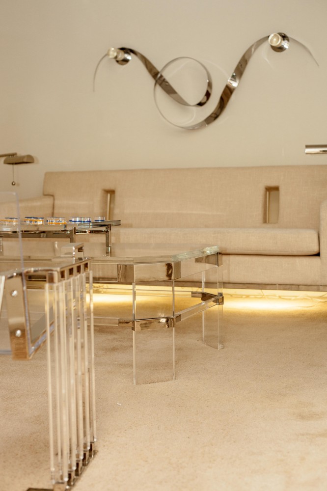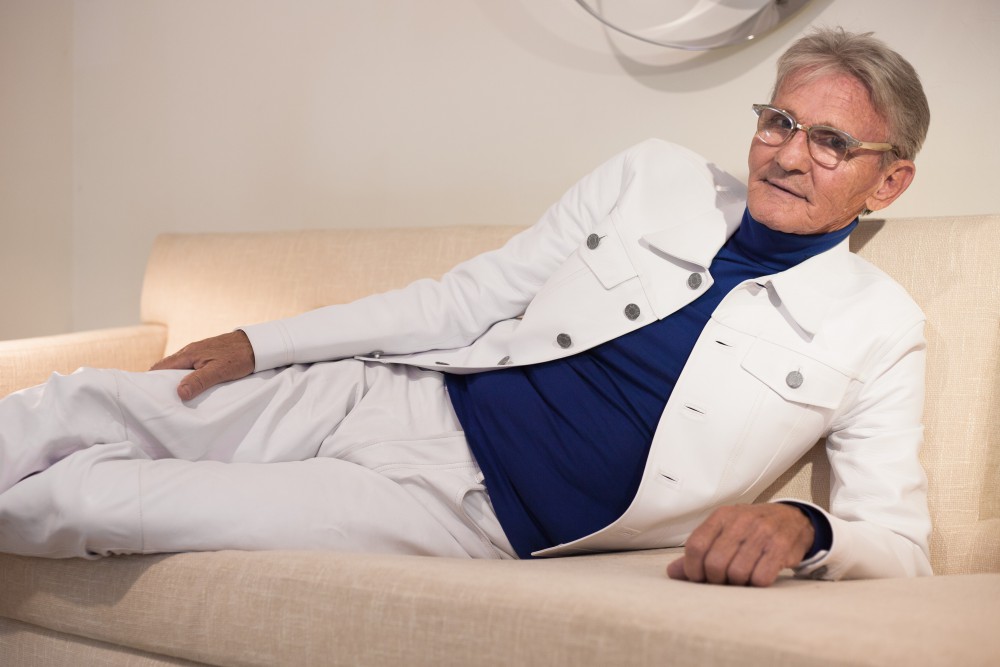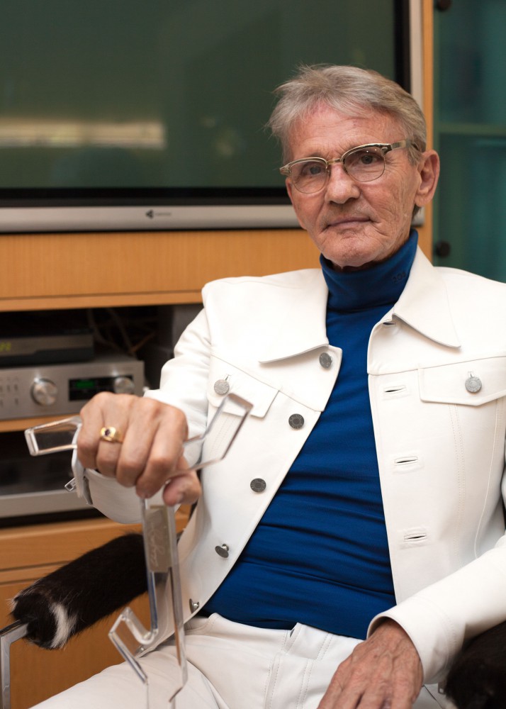 Los Angeles-based designer Charles Hollis Jones has an obsession with polymethyl methacrylate — best known by one of its tradenames, Lucite. In his 50-year career Jones has created over 1,000 designs, creating an aesthetic that is as American as apple pie: a pinch of his mother’s Indiana quilt patterns, a dash of Modernism, and an extra-large helping of over-the-top Hollywood opulence. His is a career fueled by bold-faced clients (Tennesse Williams, Sylvester Stallone, The Kardashians) and collaborators, including decorator John Elgin Woolf and architect John Lautner. PIN–UP’s Michael Bullock interviewed the sprightly septuagenarian in his home cum studio in Burbank, California, where Jones was also photographed by Ramsey Alderson, wearing head-to-toe Calvin Klein 205W39NYC (Creative direction and styling by Alessandro Bava). Below are some of Charles Hollis Jones’s best quotes.