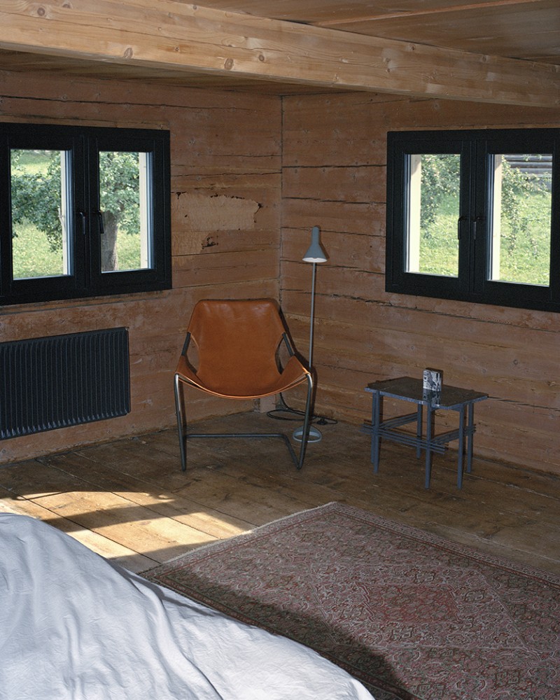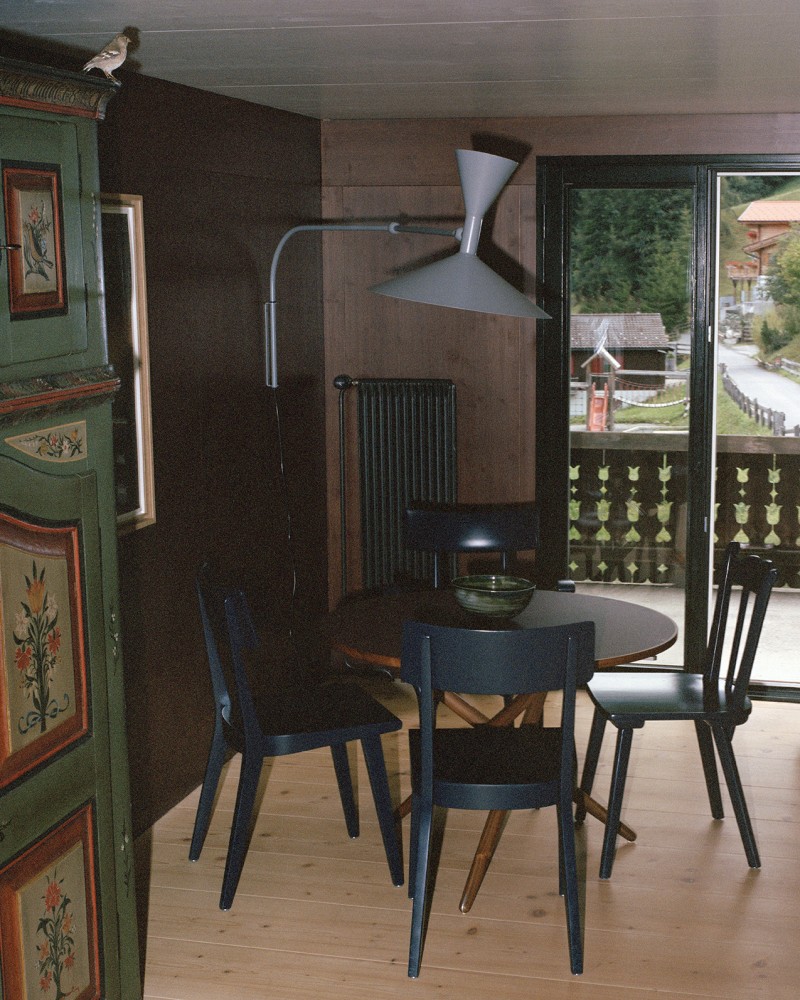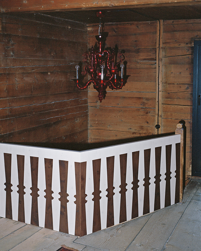 The London and Zürich-based practice imbued a playful sense of theater into the 19th-century timber structure, like the trompe l’oeil banister in the chalet’s entrance hall.