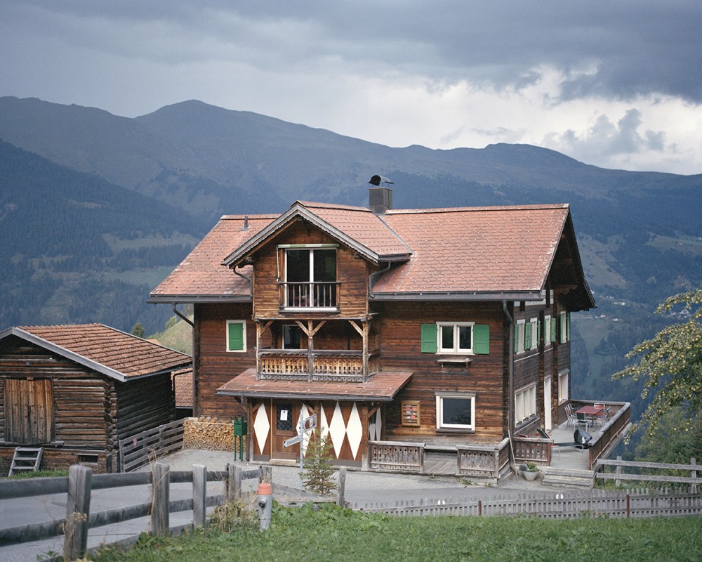 With Aux Losanges, a rural retreat for a Zürich-based couple in the Alpine village of Tschiertschen, they have had fun. Here a house of traditional timber construction, like a largish chalet (until recently used as a café and guest house), has become the canvas for ludic paintwork, a theater for events that are not what they appear to be, a cabinet whose curiosities occupy an unsettling space between nature and artifice.