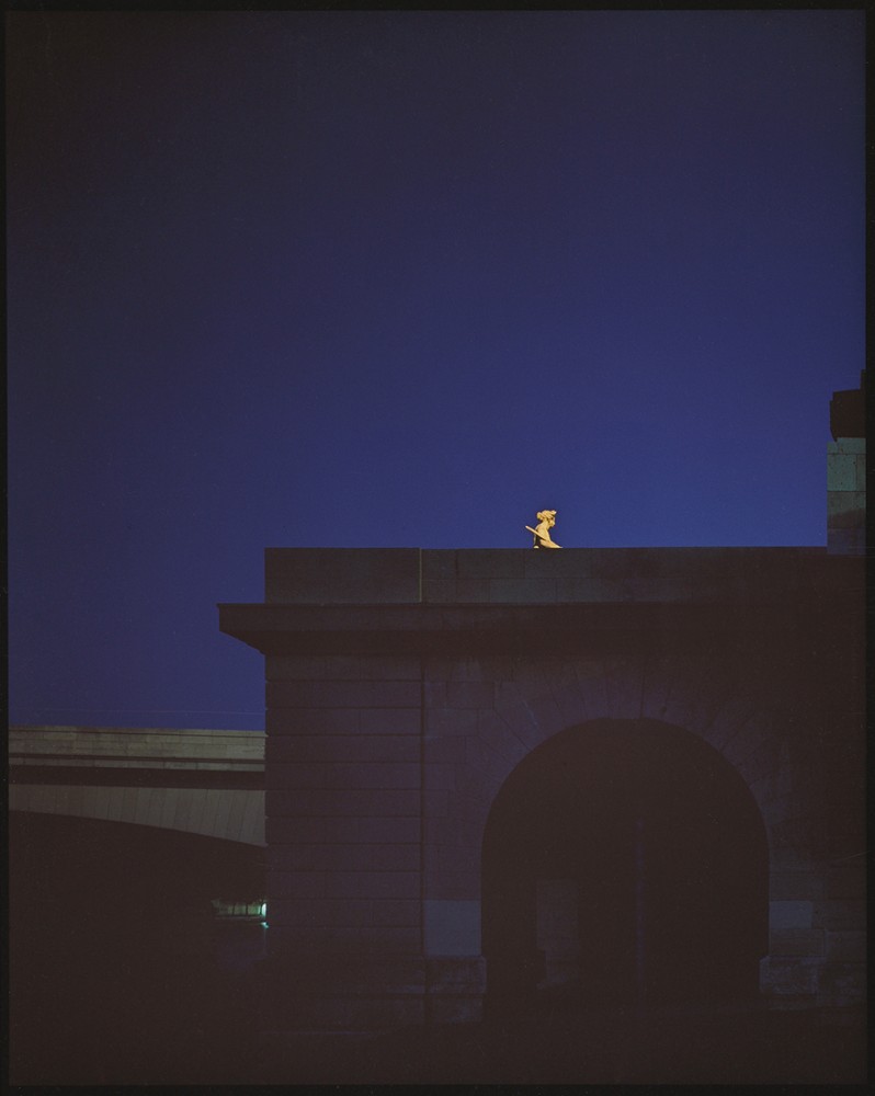 Vue nocturne d’une pile de pont et d’une statue illuminée, 1985, Daniel Boudinet, Ministère de la Culture / Médiathèque de l’architecture et du patrimoine / Dist. RMN-GP © Donation Daniel Boudinet