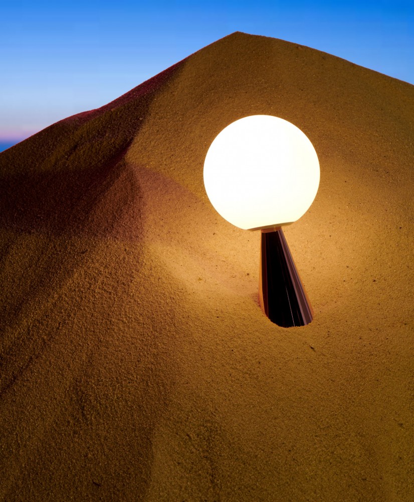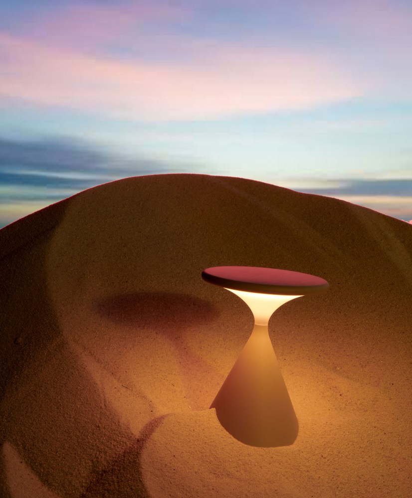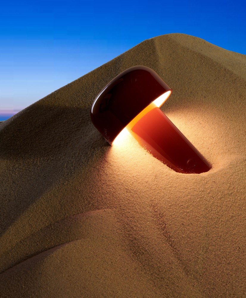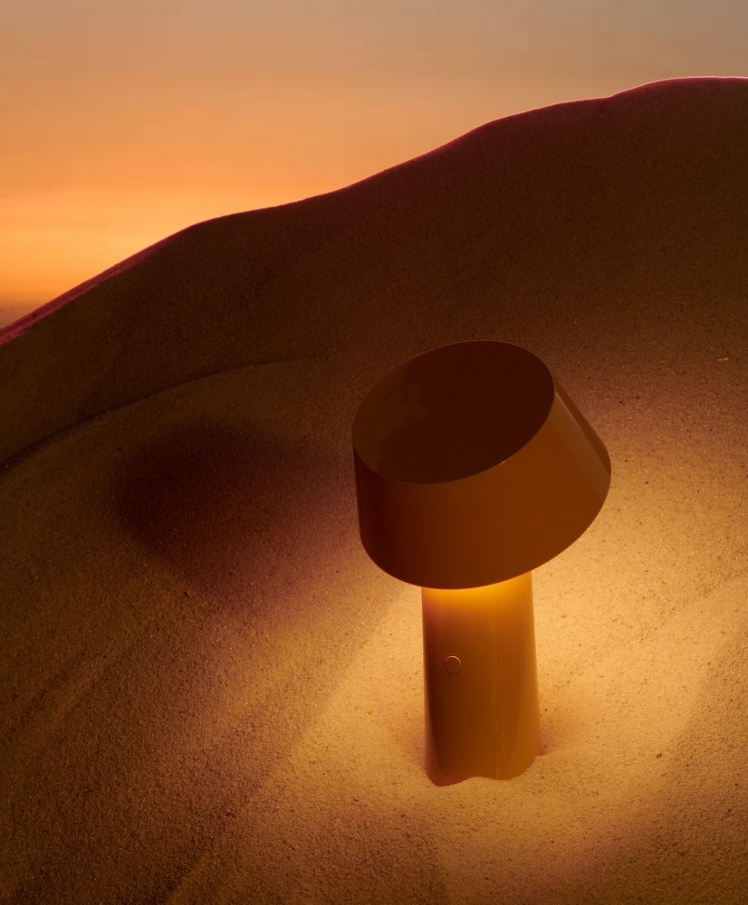 Edward Barber & Jay Osgerby, Bell Hop table lamp (2018); Color polycarbonate. Portable LED lamp with rechargeable battery. Available through FLOS.