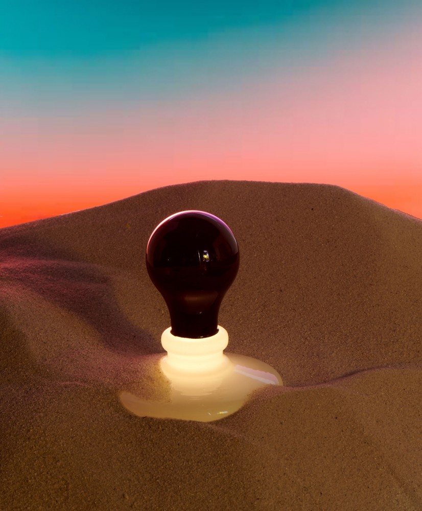 James Wines/SITE, Black Light “The Light Bulb Series” (2018); Frosted white glass. Available through Foscarini.
