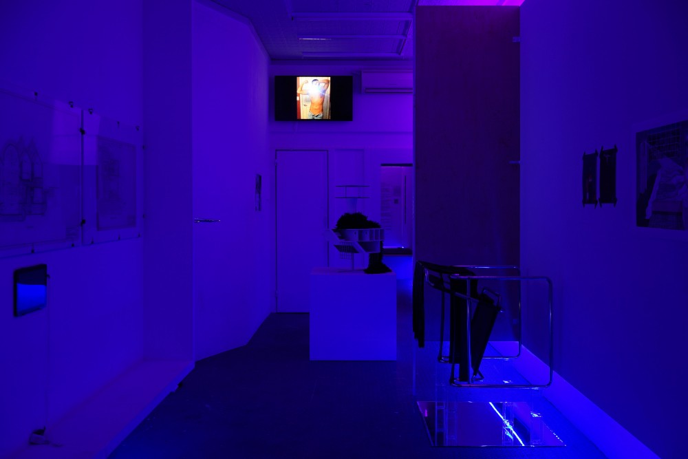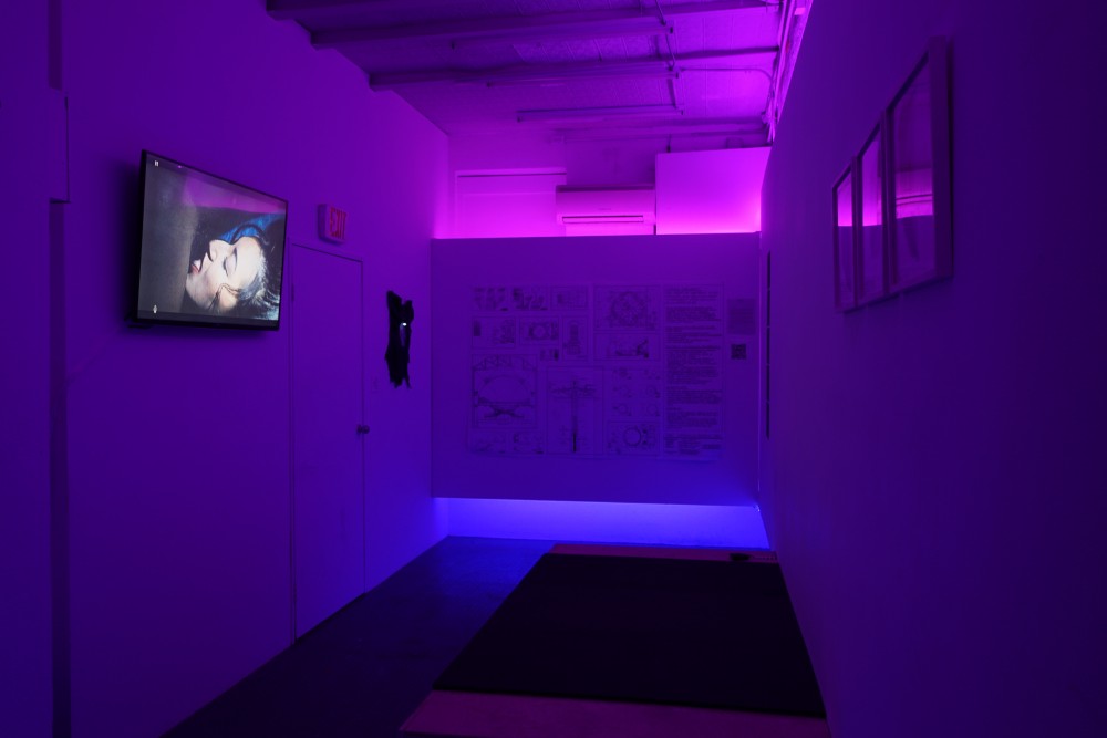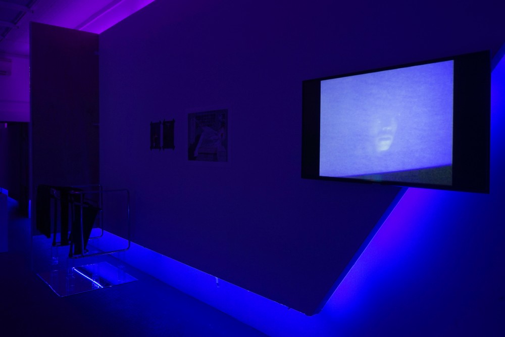 In its second incarnation, in February 2019, the Cruising Pavilion curators were invited by the Goethe-Institut New York to take over their Manhattan gallery space, Ludlow 38. New York City, a former cruising paradise, was a hotbed of activity in the 70s and 80s with three bustling focal points: Time Square, the then-derelict warehouses of Chelsea Piers, and an area of Central Park known as the Ramble. It is also, of course, home to one of the most important queer spaces of all time, the Stonewall Inn. Here the Pavilion team went local, showing work by the city’s contemporary artists as well as presenting the histories of gay venues both realized and not. They stayed away from the icons of New York gay art — Félix González-Torres, Keith Haring, Robert Mapplethorpe, Andy Warhol — and instead focused on contributions from a new generation, among them DeSe Escobar, Kayode Ojo, Carlos Reyes, and Robert Yang. Like in Venice, the small Lower East Side gallery was dimly lit, this time with a blue glow, offering a similar aesthetic experience to the cruising venues it celebrated.