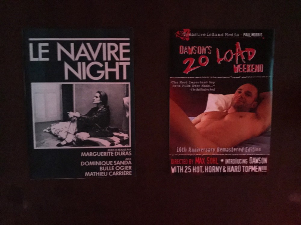 Movie posters for Treasure Island’s Dawson’s 20 Load Weekend (left) and Marguerite Duras’s Le Navire. Photography by Michael Bullock.