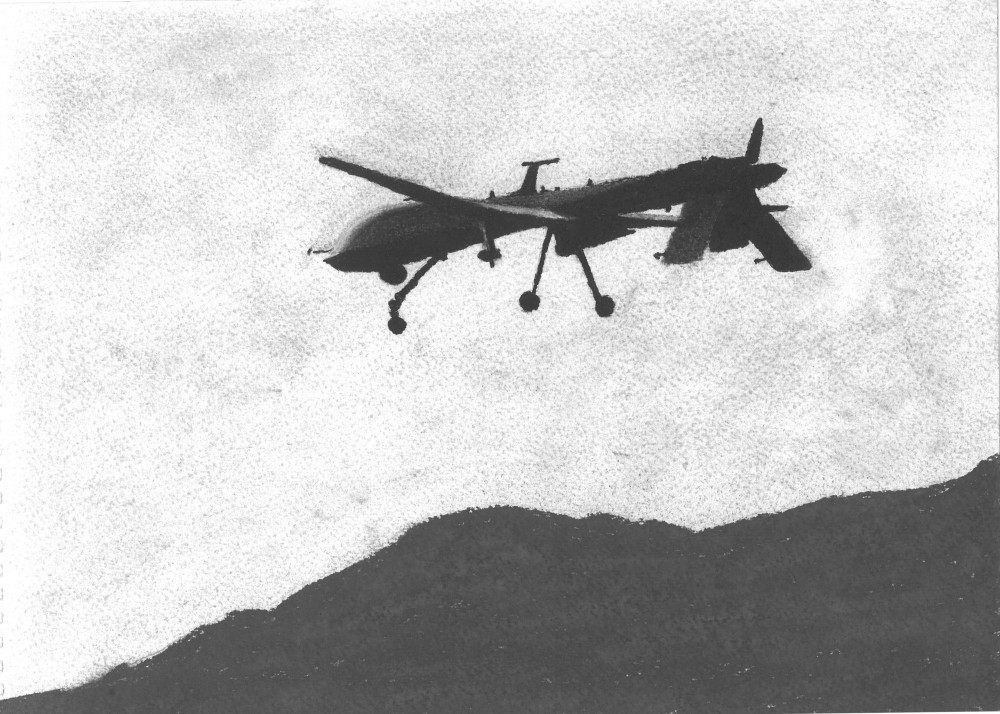 As Grégoire Chamayou notes, as early as 1964 engineer John W. Clark wrote that “(w)ith technology as advanced as it is today, it is unnecessary to require a man to expose himself to physical danger in order to earn a living. There is no hazardous task performed by men today that cannot, in principle, be performed by remotely controlled machines.” Clark was an early theorist of drones, or the “telechiric machine,” as he called it, but they did not appear in full force on the field of combat for several decades. Preceded by unmanned surveillance vehicles and later decoy planes developed by the Israel Defense Forces, weaponized drones were first used in combat in Afghanistan following the attacks of September 11, 2001. More precisely, the first time a Predator drone fired a Hellfire missile was on February 4, 2002. It was flown by the CIA and its target was a tall man assumed to be Osama Bin Laden. He was not Bin Laden, although the military maintained that the target was legitimate. “We’re convinced that it was an appropriate target,” said Pentagon spokeswoman Victoria Clark, as The New York Times reported two weeks later. But, she added, “We do not know yet exactly who it was.”