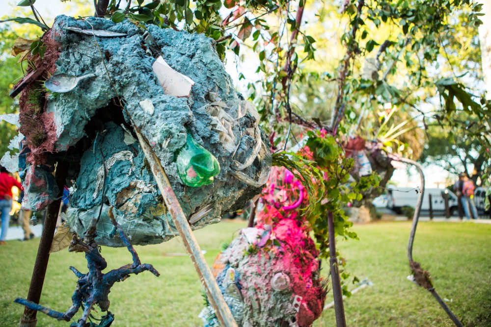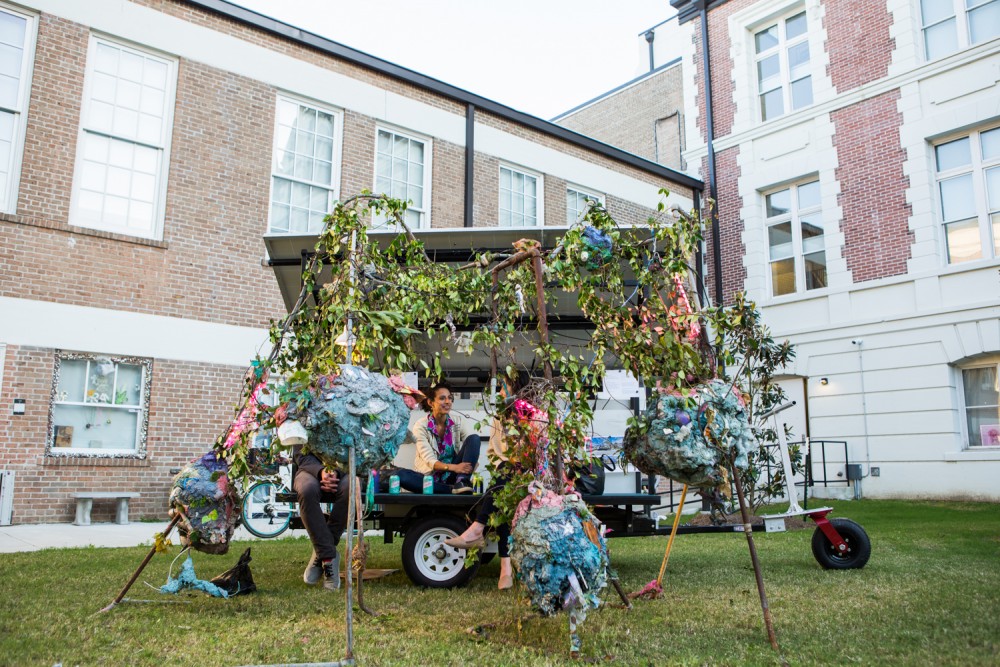 What was so rare and refreshing about IdeasCity was that it really was about ideas, not the perfect polish of a museum-ready show, but the equally potent power of proposition. And, of course, the artists were right there to talk about and engage their work. Yin Kong, a New Yorker, showed people how to make exhibitions out of everyday artifacts and facilitated storytelling while Banu Çiçek Tülü, a Turkish artist and researcher living in Berlin, walked around in curious “headphones” to start conversations on what she termed “sonic violence.” The artist duo Ariel René Jackson, a New Orleans native living in Austin, Texas, and designer and educator Joseph Cuillier, also from New Orleans but living in New York, created “practical art,” sculptures that proposed new forms of education which respect and empower individual communities’ traditions and ways of knowing, in their case integrating gardening and small-scale farming into an educational community.