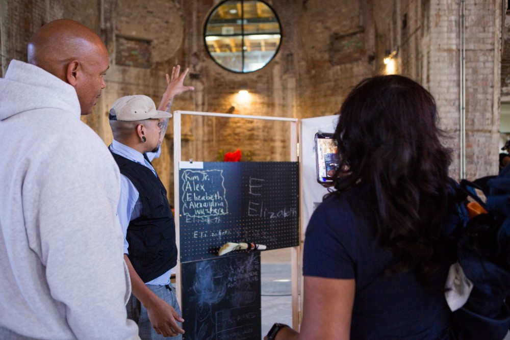 Colombian artist Santiago Pinyol, who is based in Rotterdam, invited festival goers to help him translate poems in a way that challenged and questioned the Trump administration's attitudes towards non-English languages, as well as broader xenophobic sentiments in America. New Orleans-based fashion designer Chloe Dewberry created a provocative garment that interrogated the history of incarceration in the U.S. by confronting the wearer head-on: all the text on Dewberry’s denim apron, a mock “souvenir” from the notorious Louisiana State Penitentiary (commonly called Angola prison) was upside down, designed to speak not out to the world but to the robed person. Visitors were invited to wear it and read critical dates related to slavery and incarceration that were literally threaded together and patched onto the garment like logos on a pair of jeans.