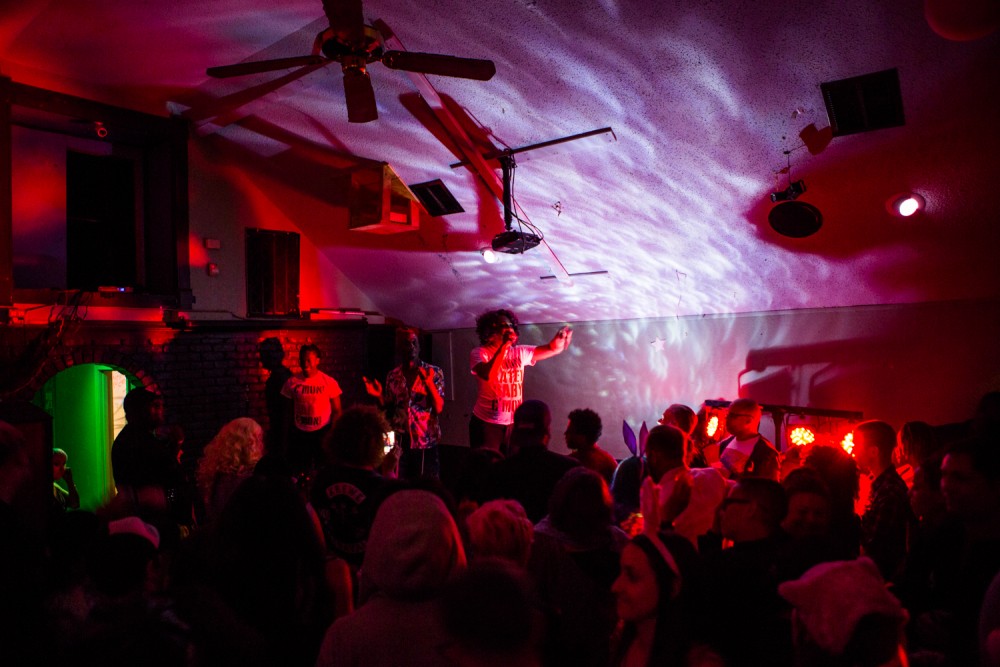 Bounce icon and New Orleans-native Katey Red with twerking partygoers. Photograph by Sarrah Danziger for PIN–UP.