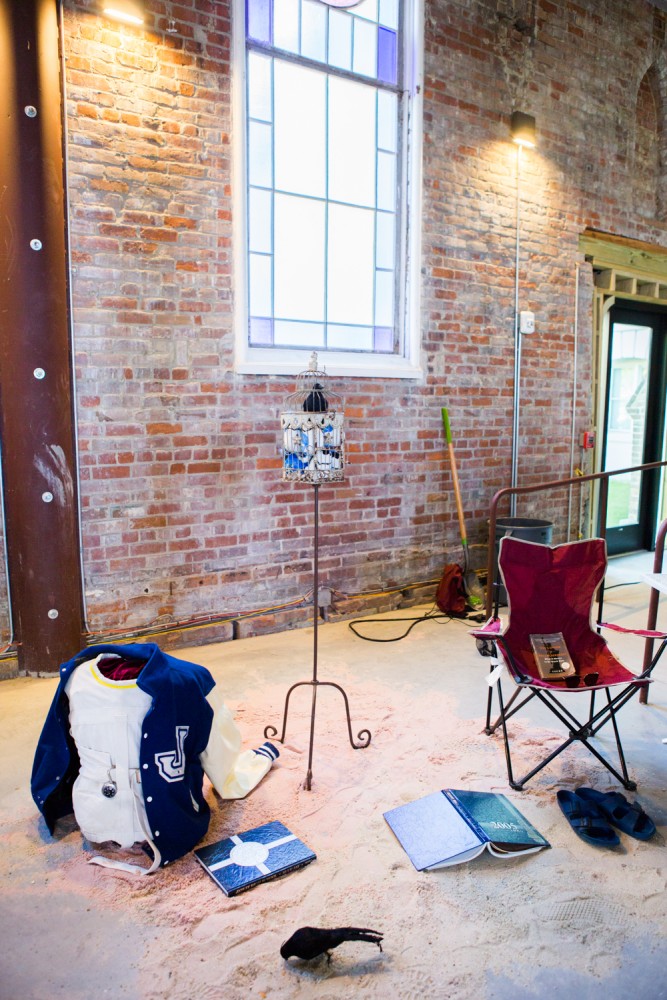 While there were the festivities on the stage outdoors, the arguable centerpiece of IdeasCity New Orleans was taking place in a hollowed out 19th-century church just behind the stage. McEwen and IdeasCity had invited ten fellows from New Orleans and the surrounding area and ten from across the world to participate in a week-long residency program. (With the exception of two fellows, Louisianans Atianna J. Cordova and Hannah Chalew who spent a month working with design mentors to construct an easy-to-transport community engagement cart focused on green infrastructure and a mobile solar-powered sculptural pavilion, respectively, and showcased their work outdoors.) The fellows explored the city with guides, historians, organizers, architects, and other artists. “Fellows did visits to the Mississippi River where we saw graveyards, oil refineries, plantations that had become prisons, all adjacent to each other on the river,” explained McEwen. They then showcased work they developed during the residency and inspired by their explorations in in a daylong exhibition of sculptures, installations, zines, performances, and more.