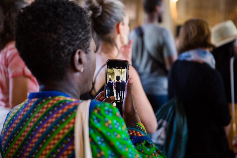 An audience member doubles down on documenting the Washitaw Nation's performance. Photograph by Sarrah Danziger for PIN–UP.