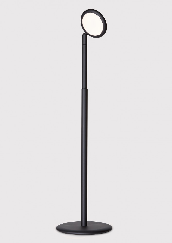 The Parrot lamp in black. Thanks to its battery power, the Parrot offers 10 hours of wireless lighting while its height-adjustable body, rotating head, and touch-dim LED light make it one of the most flexible lights available. Photography by Simon Menges.