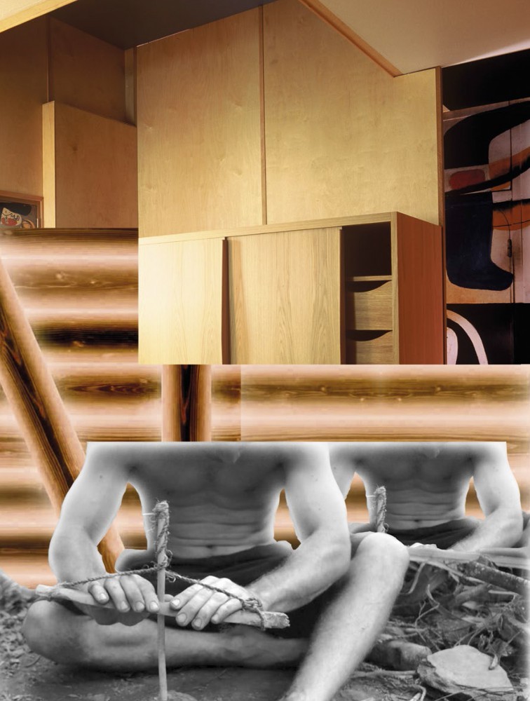 Outside cities, in the woods of the Pacific Northwest, Scandinavia, Western China, and the Japanese Alps live a people known as kinvolk. A generation fed on aspirational imagery pertaining to authenticity, community, and “real experiences,” where everything is craft and elaborate organic breakfasts represent an escape from their precarious jobs in the creative industries and endless austerity measures, have decided to “go native,” and leave the mid-21st-century behind. Deep in the insta-worthy scenery of the forest, Le Corbusier’s Cabanon, Ted Kaczynski’s hut, and Thoreau’s Walden are authentically replicated and modded to allow for other manners of inhabitation than that of the single male bachelor. Furniture reminiscent of the Shaker and Autoprogettazione traditions, driftwood assemblages, dried flowers, and the occasional flotsam of industrial civilization adorn the sensually austere interiors of these arcadian huts, creating the perfect post-information-industrial idyll.