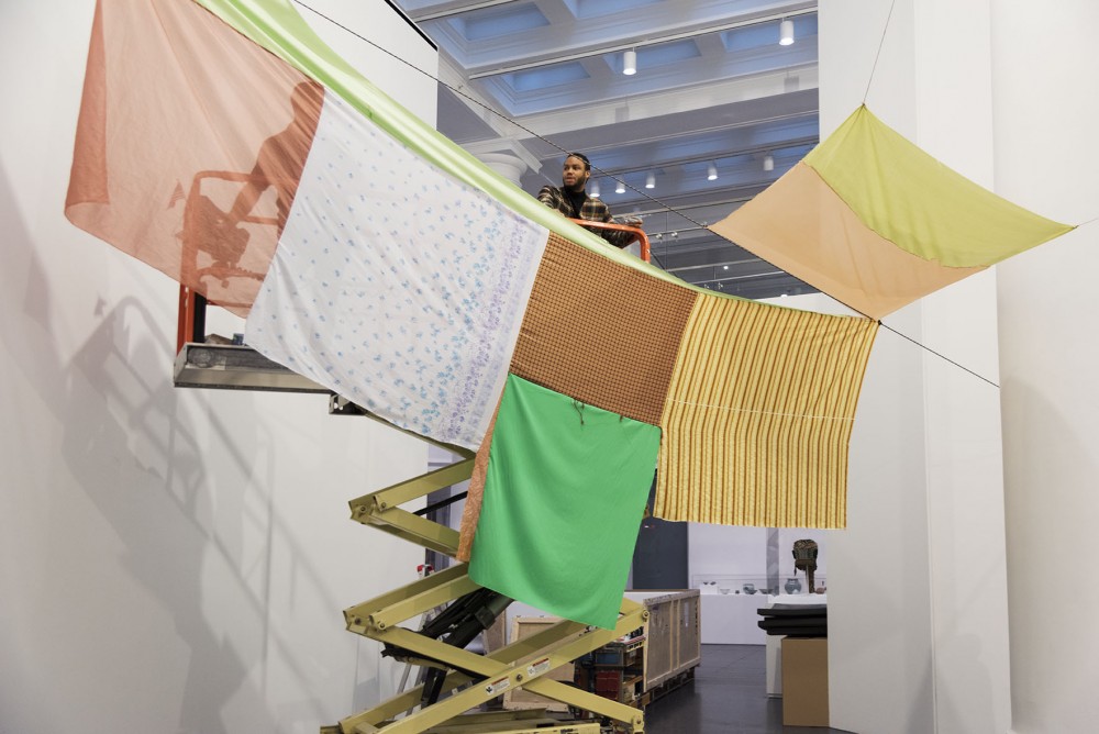 Eric N. Mack installing at the Brooklyn Museum.