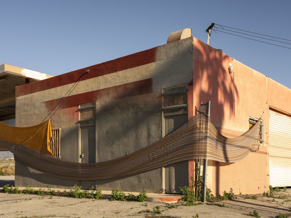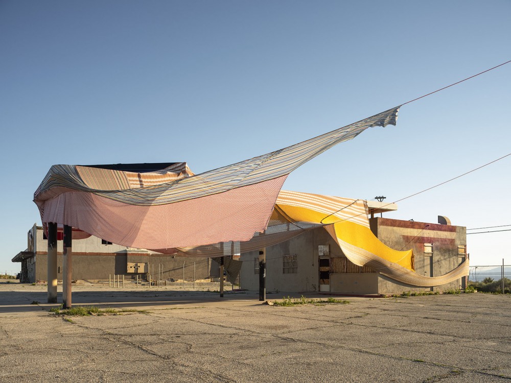 You have an incredible piece, Halter, up at Desert X, in which you use vintage Missoni fabrics to wrap an old gas station that sits at the edge of the Salton Sea in Coachella Valley. Working outdoors at such a large scale, how did you think about the work and its relationship to the landscape?