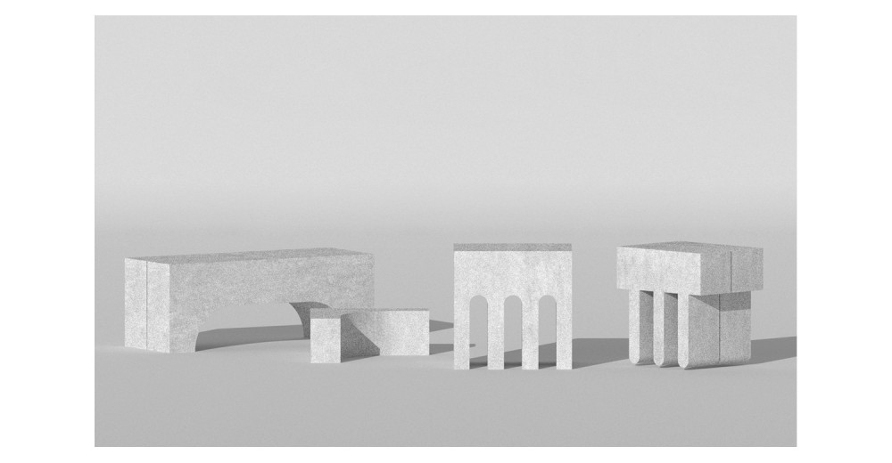 Each shape reminds me of an archetypal architectural shape. Some are inspired by recognizable shapes. Even the ones that are less recognizable still evoke a familiarity because of their rhythm, their symmetry, the column-like repetitions. Often architecture is made of assembled modular geometries if we think of stones, bricks, metal beam construction, or concrete structures.