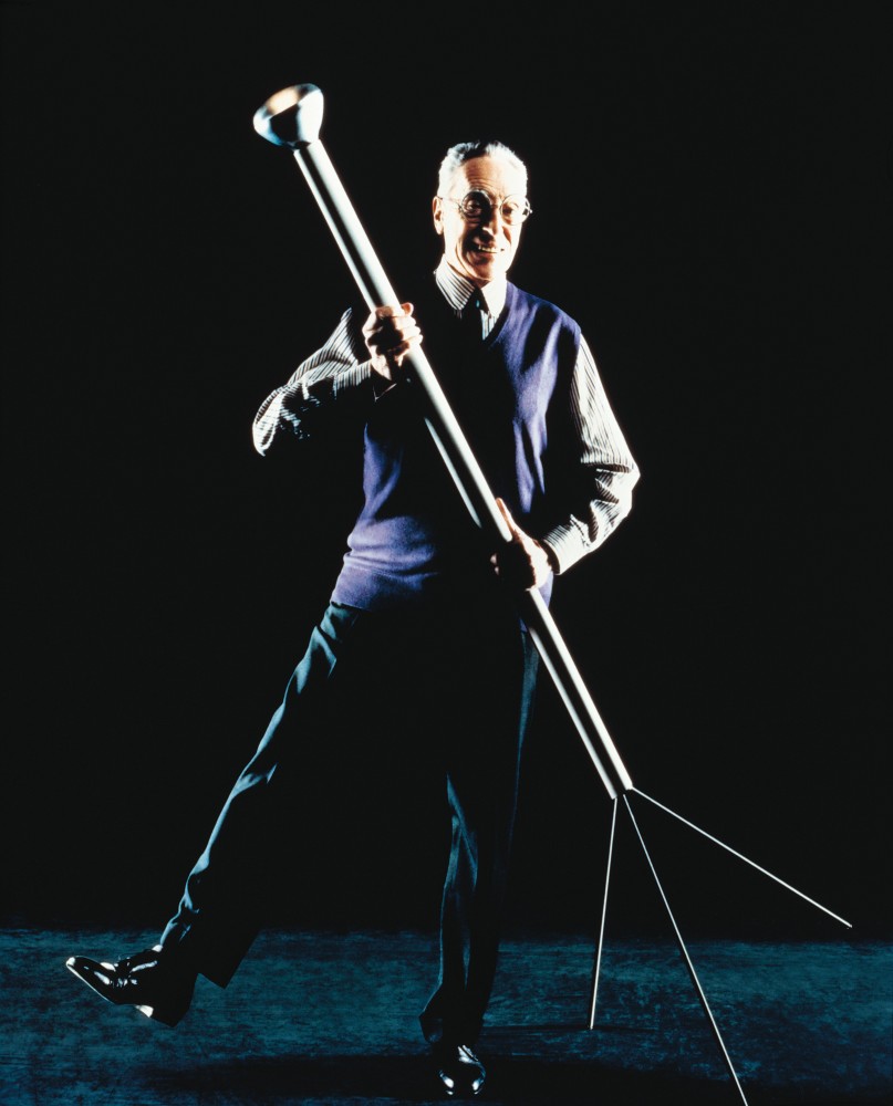 Achille Castiglioni with his Taraxacum light. Portrait by Cesare Colombo.