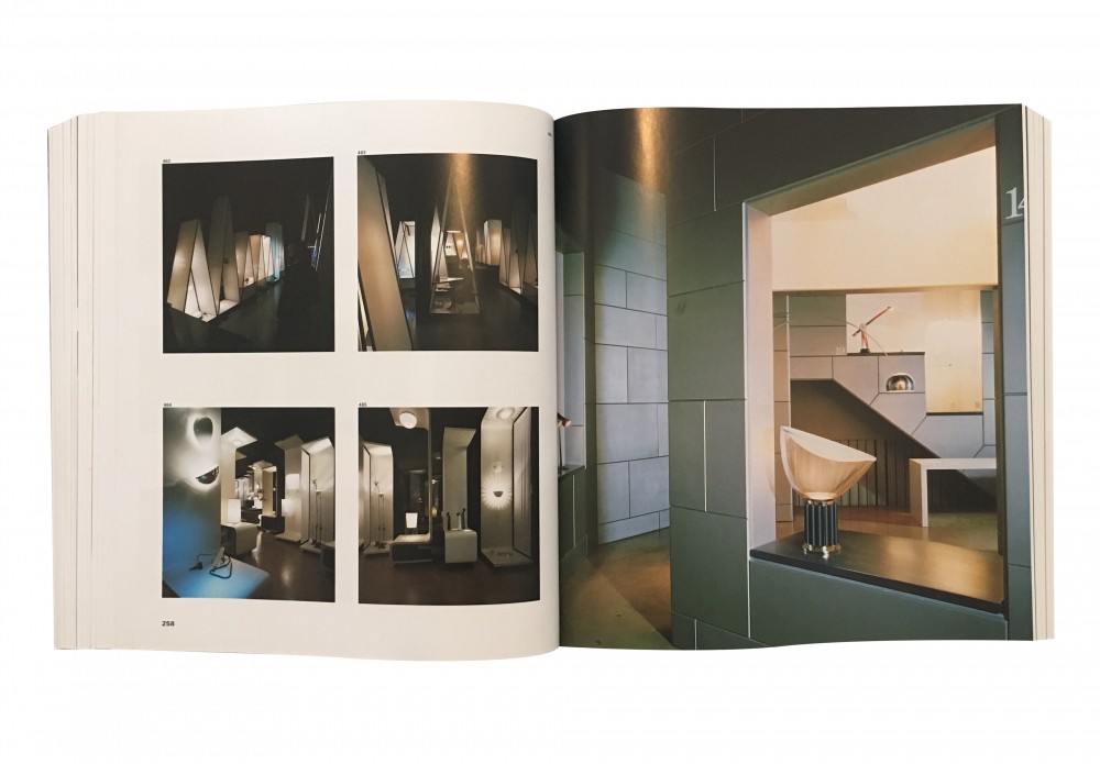 Interiors of Flos showroom at Monteforte 9, Milan. Achille Castiglioni with Paolo Ferrari (1976, 1984), and Italo Lupi (1990).