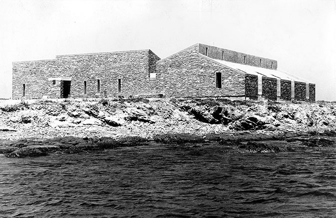 UR: I never dated or signed any of my paintings, whereas in architecture a timeline is inevitable. The answer to your question is the Case di Palma, the summerhouses I built in Stintino, Sardinia (1970–72). You see, I didn’t use glass in that case. I used natural terracotta tiles that had been baked in small furnaces. I had part of them glazed in blue so that I could lay them with alternating blue/terracotta colors. Color is what saved that building because we didn’t get permission from the heritage-preservation office in Sassari to make a vaulted roof, and when the client asked me to insert some random openings, I opted for a continuous series of triangles.