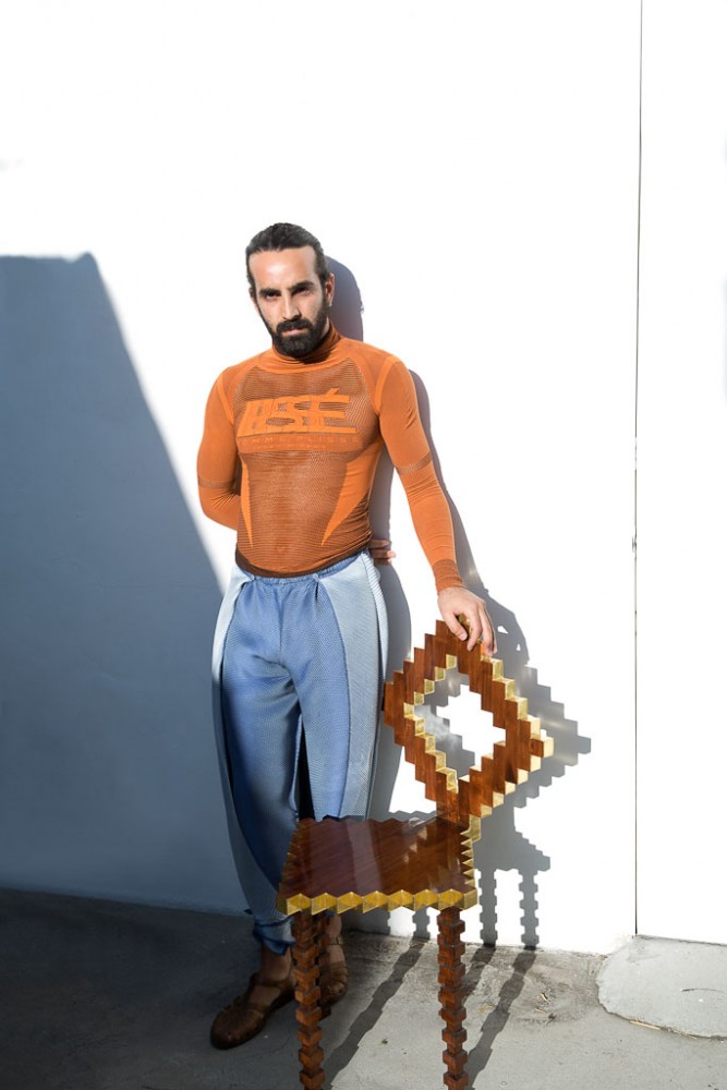 ANNEX co-founder and curator Jay Ezra Nayssan photographed by Daniel Trese for PIN–UP. Stool by Greg Ito, silverware by Oren Pinhassi.