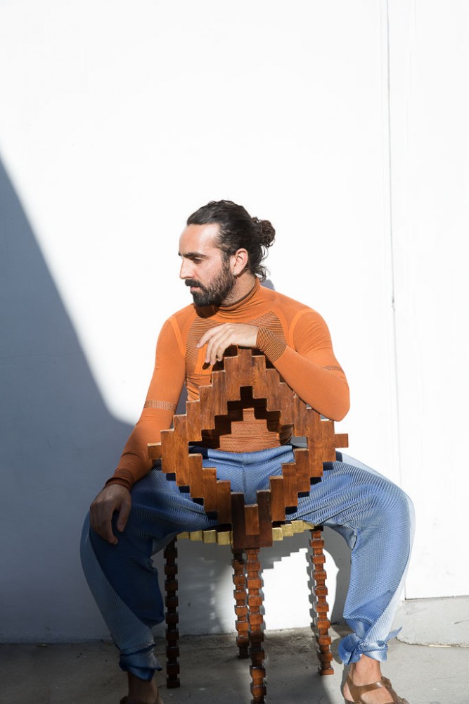 Jay Ezra Nayssan photographedy by Daniel Trese for PIN–UP. Chair by Pedro Friedeberg.