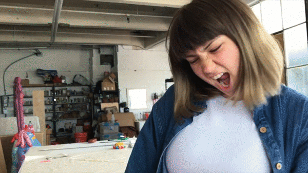 The way I originally envisioned it was a sort of pseudo-slumber party, really claustrophobic. But I realized I really wanted this show to be like walking into a ceremony, or a ritual — sort of like a temple. Usually everything is very bright, but for this I feel like everything will be a bit more toned down. There is still color, but it’s not gonna be like a barf of color. There are these giant wicker girls I made, and some marble pieces which feel like they are morphing, but in this frozen morph state. There is something about the marble and the neutral colors — I guess I wanted it to feel more earthy. There are also some coiled jute rugs, and I’m making girl wallpaper. I wanted to make this ocean of girls, and they are all like tangled together. When you look from far away it just looks like girls tangled together, but when you get closer, you’ll see all of the weird things they are doing(, nudes cheering, stretching, or flowing into yoga poses).