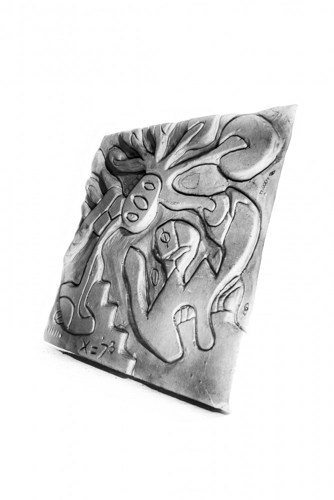 ARCHITECTONIC ENVIRONMENTAL CERAMIC PANELS, Black Iron Clay + Basalt Silica + Fermented Potassium Powder + Red Mica. Y. Agbo-Ola 2019. Image courtesy of Olaniyi Studio.
